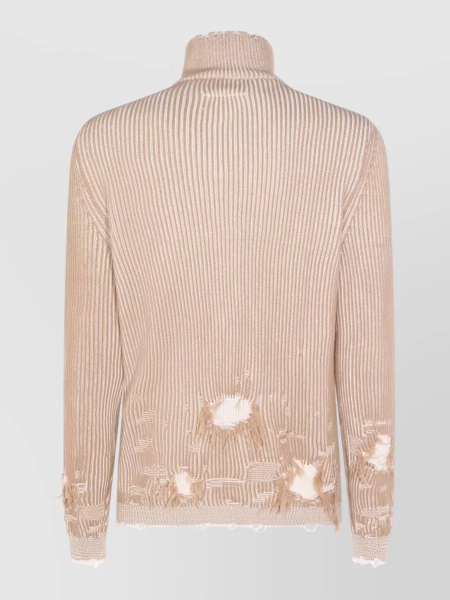 Mm6 Maison Margiela high neck ribbed knit sweater distressed