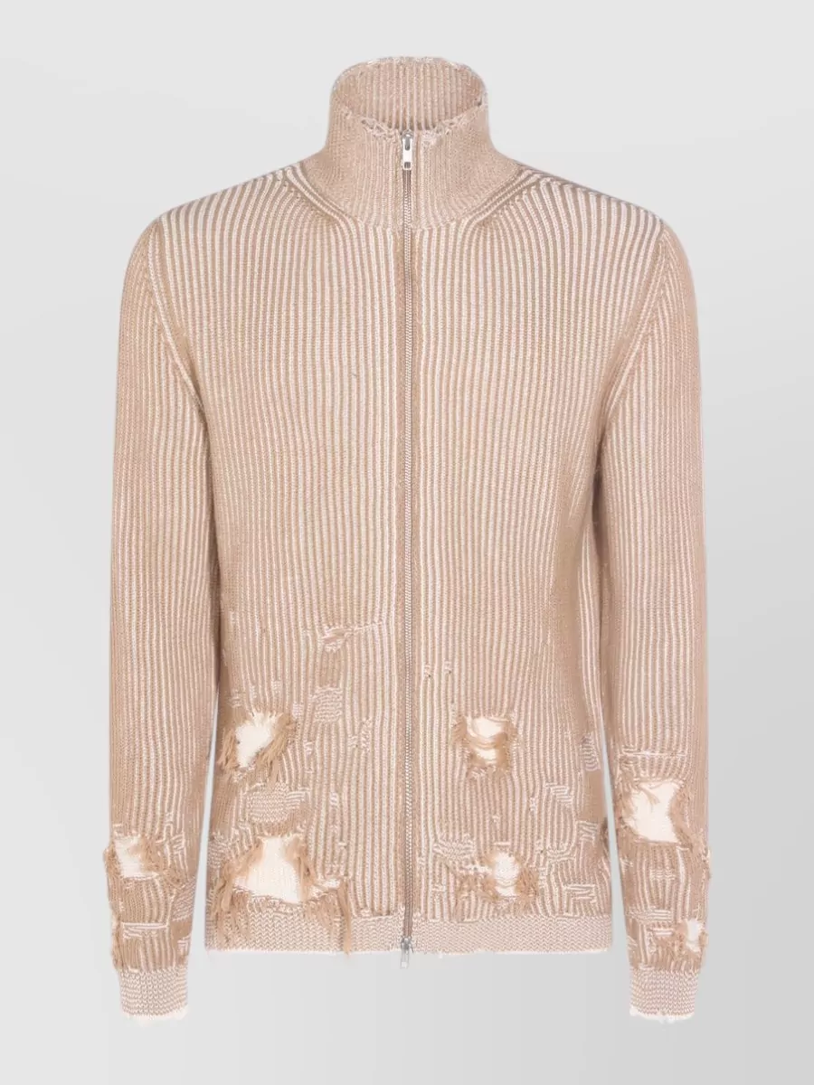 high neck ribbed knit sweater distressed