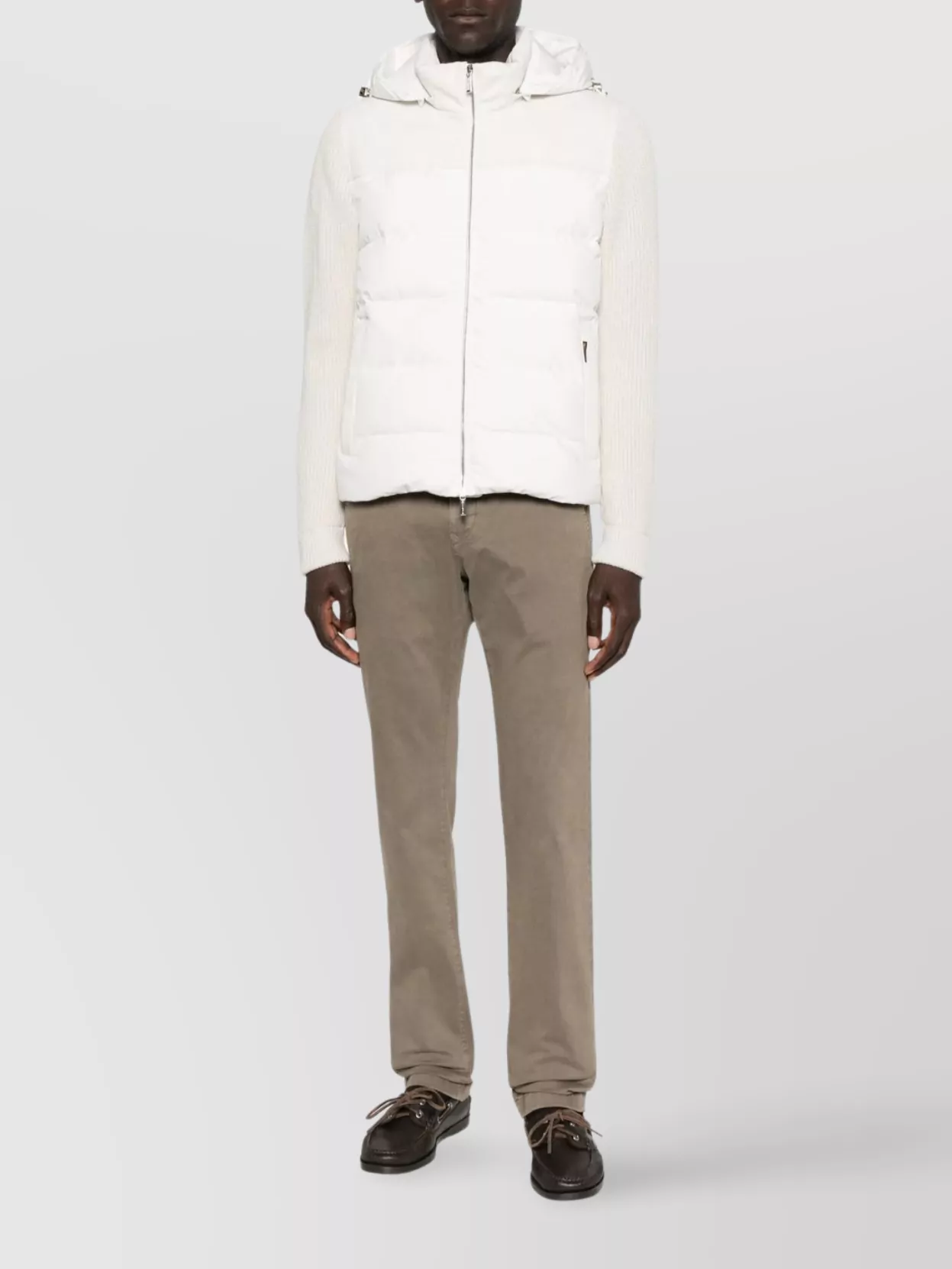 hooded down jacket with ribbed cuffs and hem