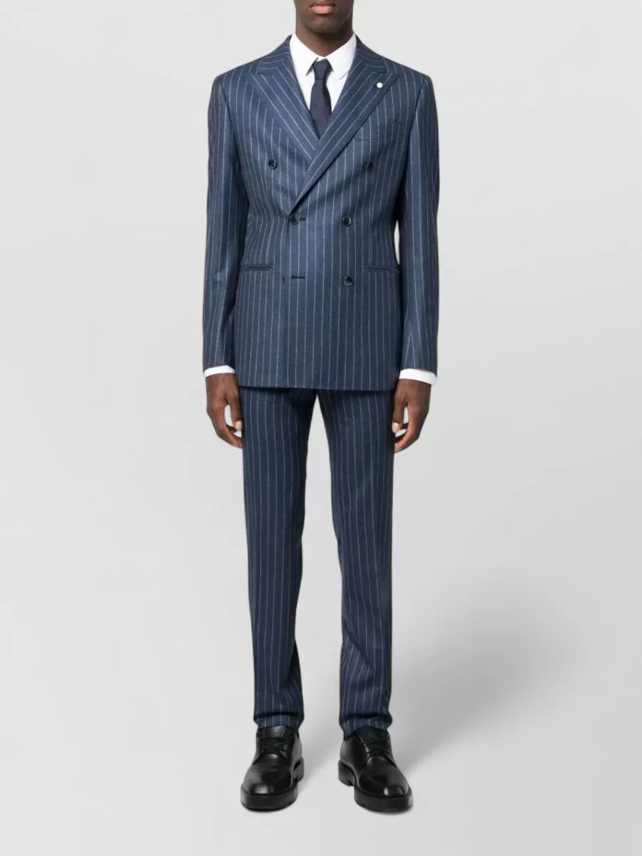pinstripe wool suit peak lapel jacket