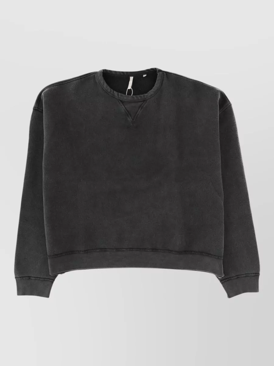 crew neck long sleeve sweatshirt with ribbed cuffs and hem