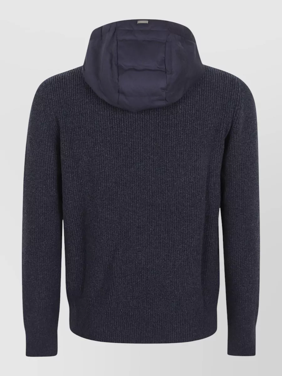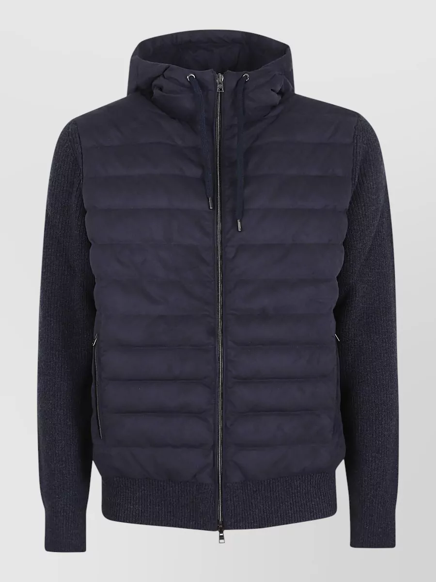 Herno mens hooded jacket knit sleeves quilted front