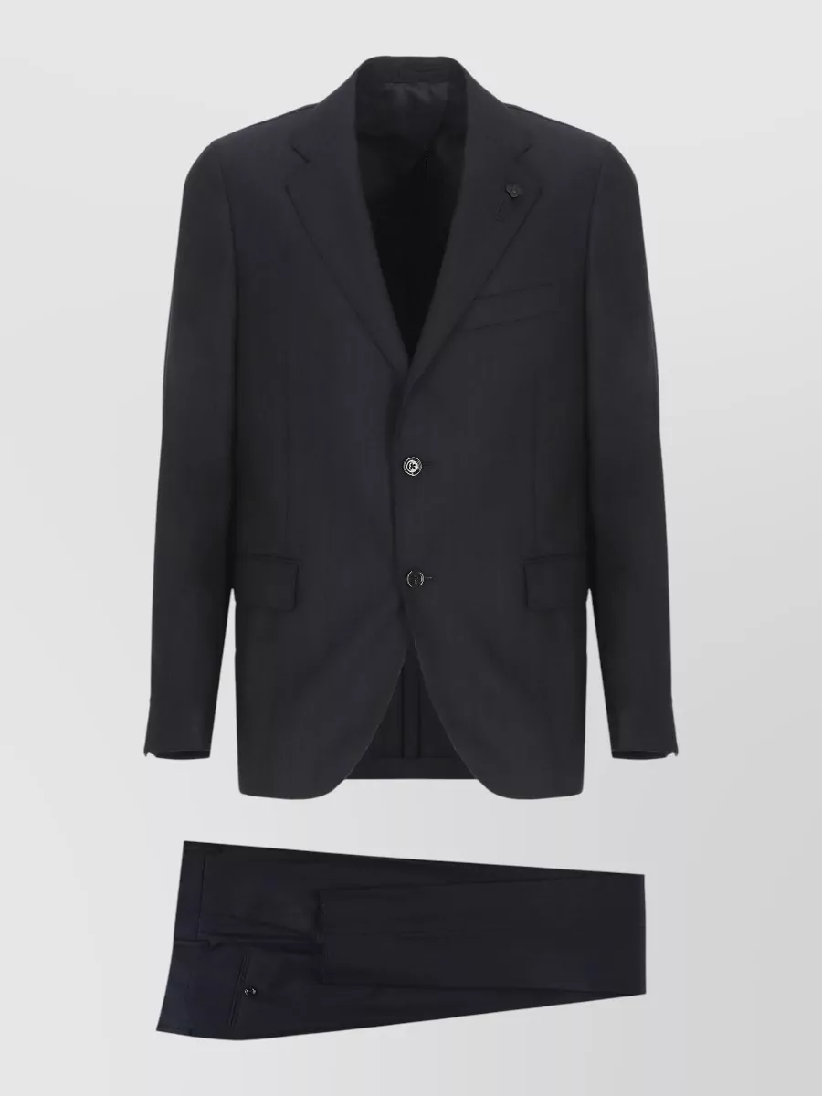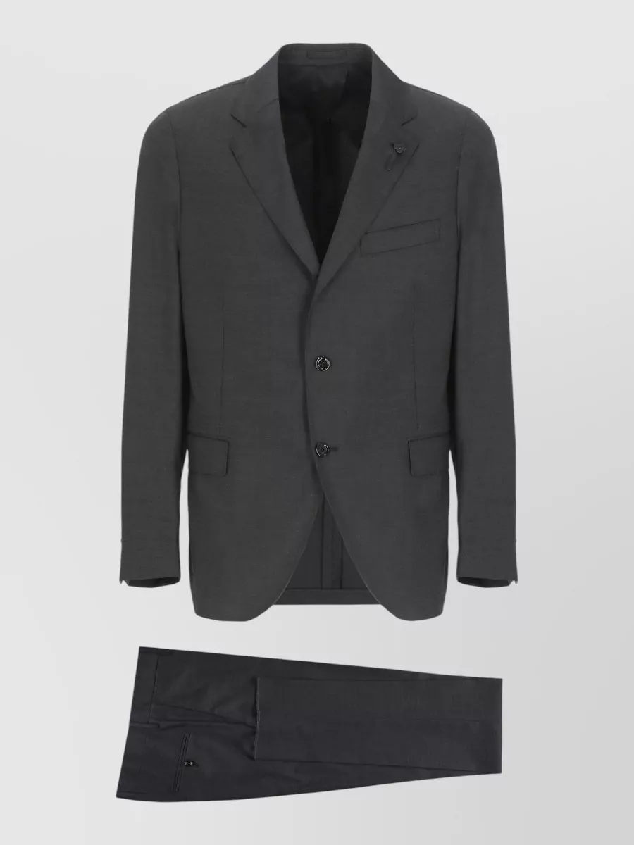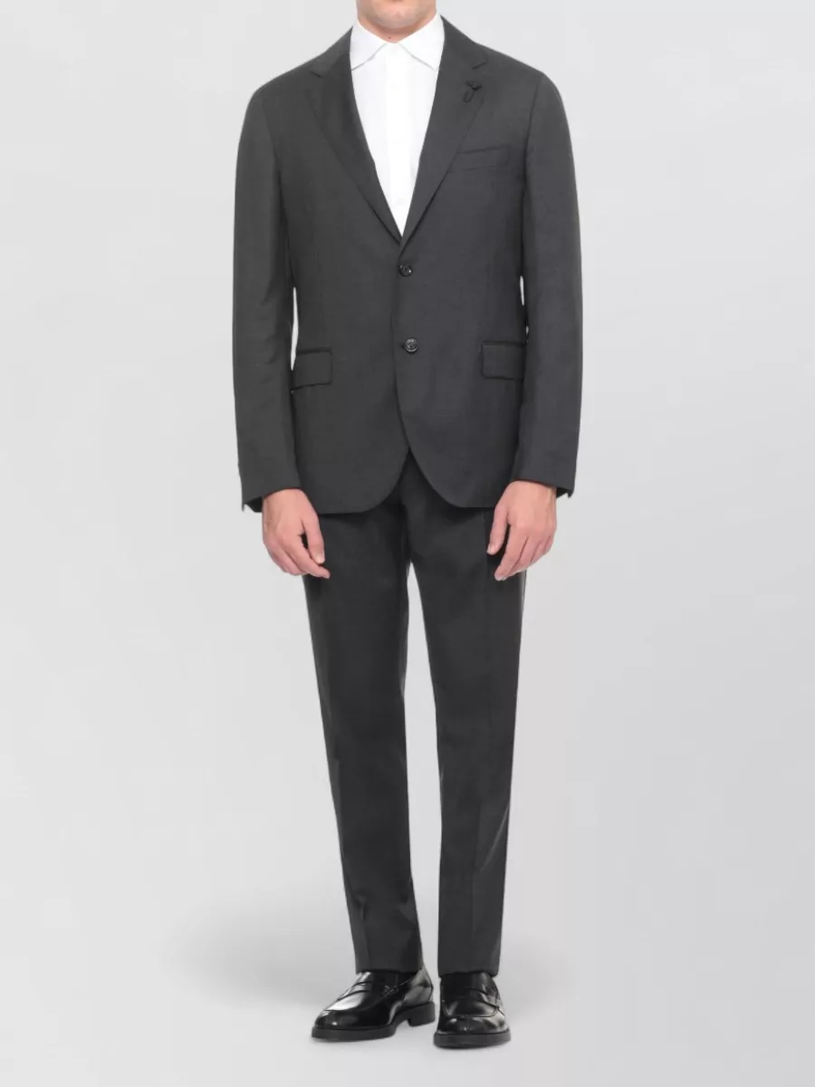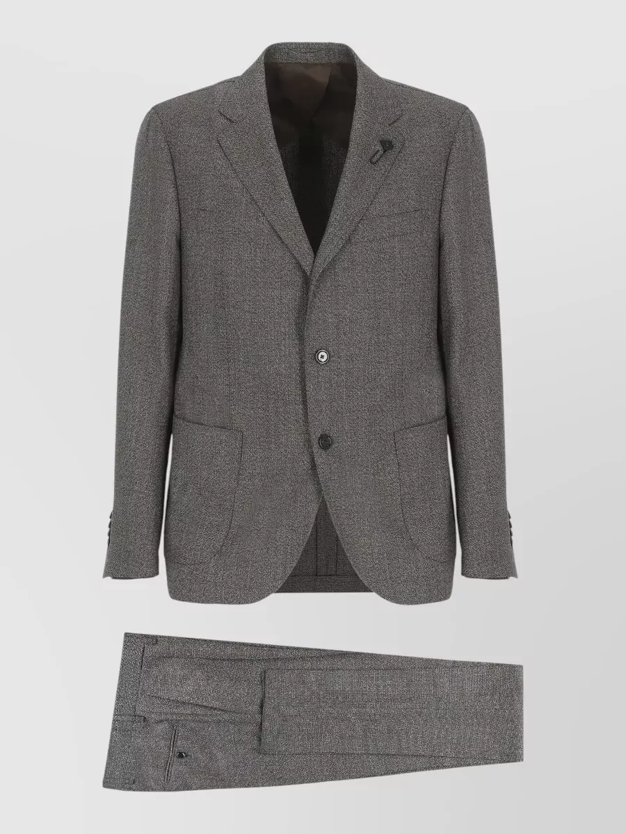 Lardini wool suit structured lapel collar vents