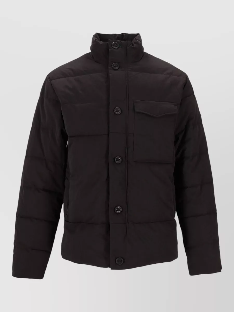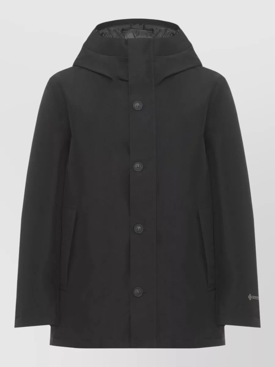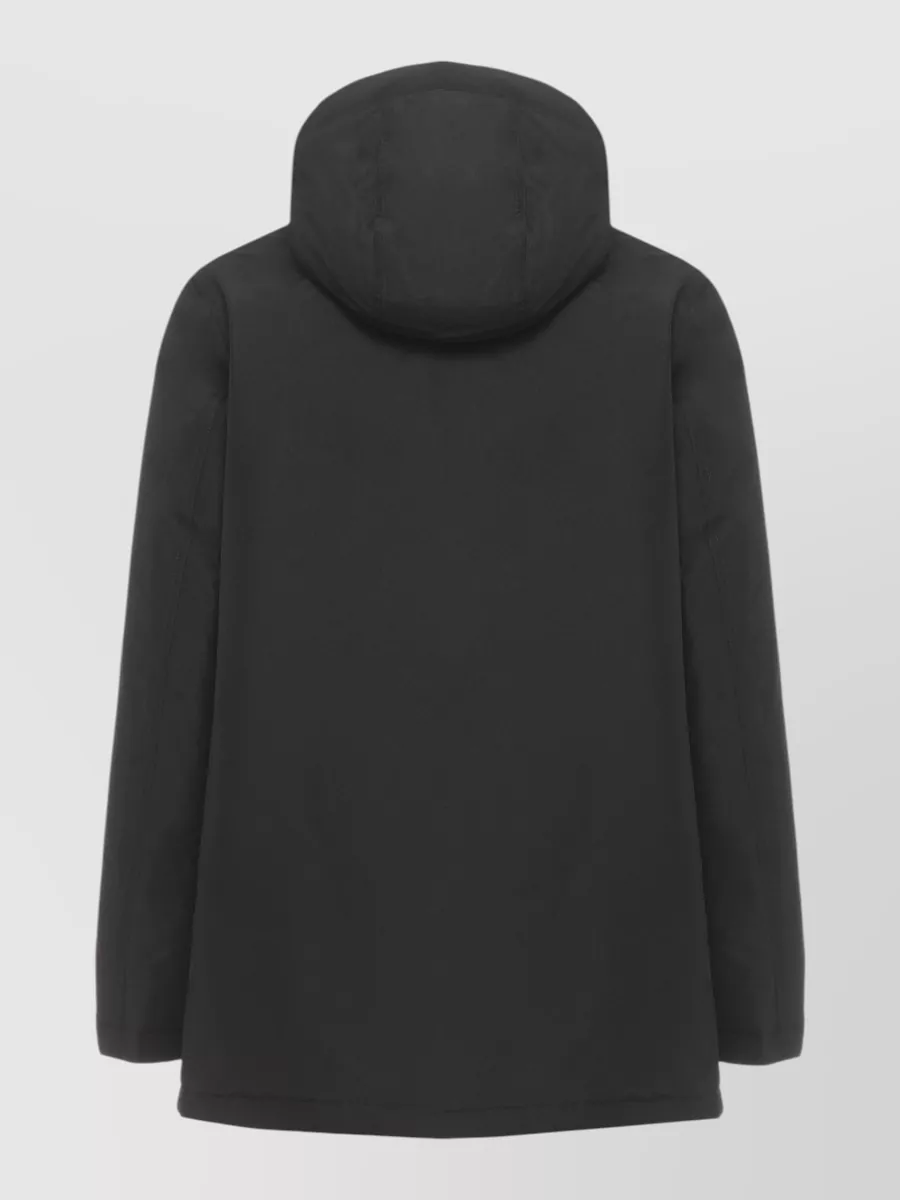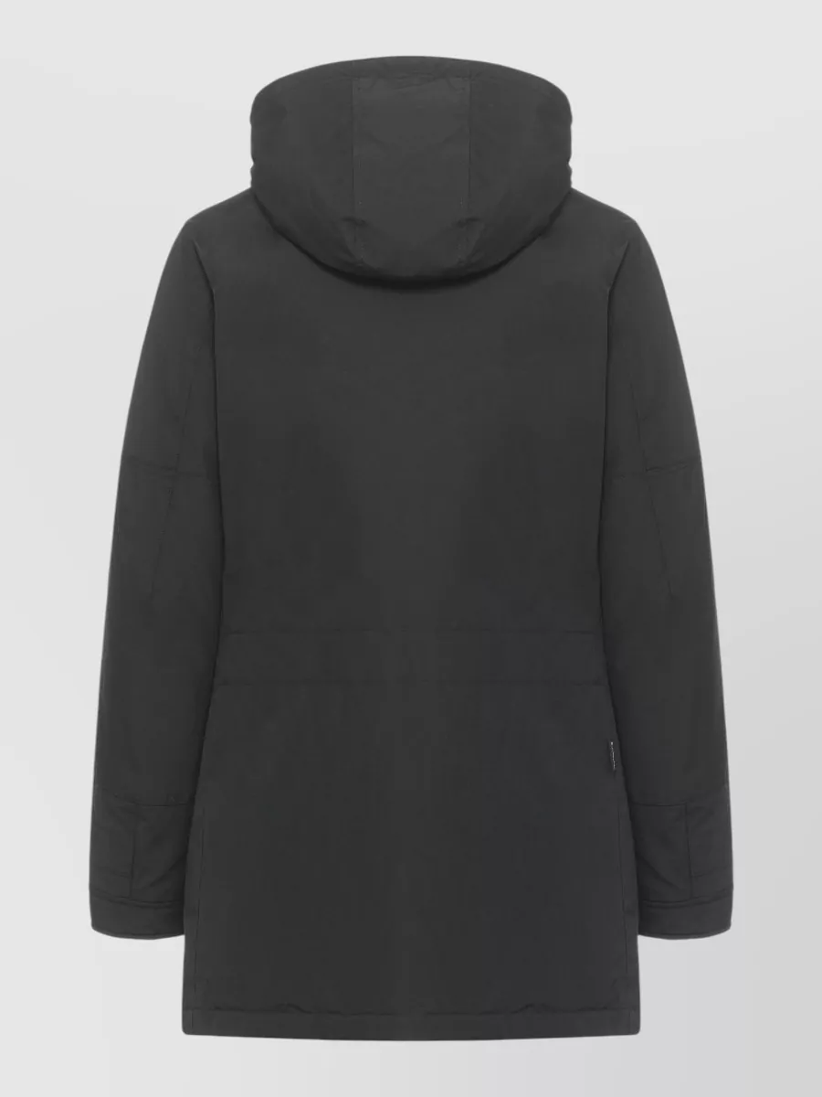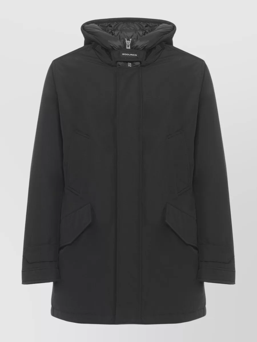 Woolrich hooded parka high neck flap pockets