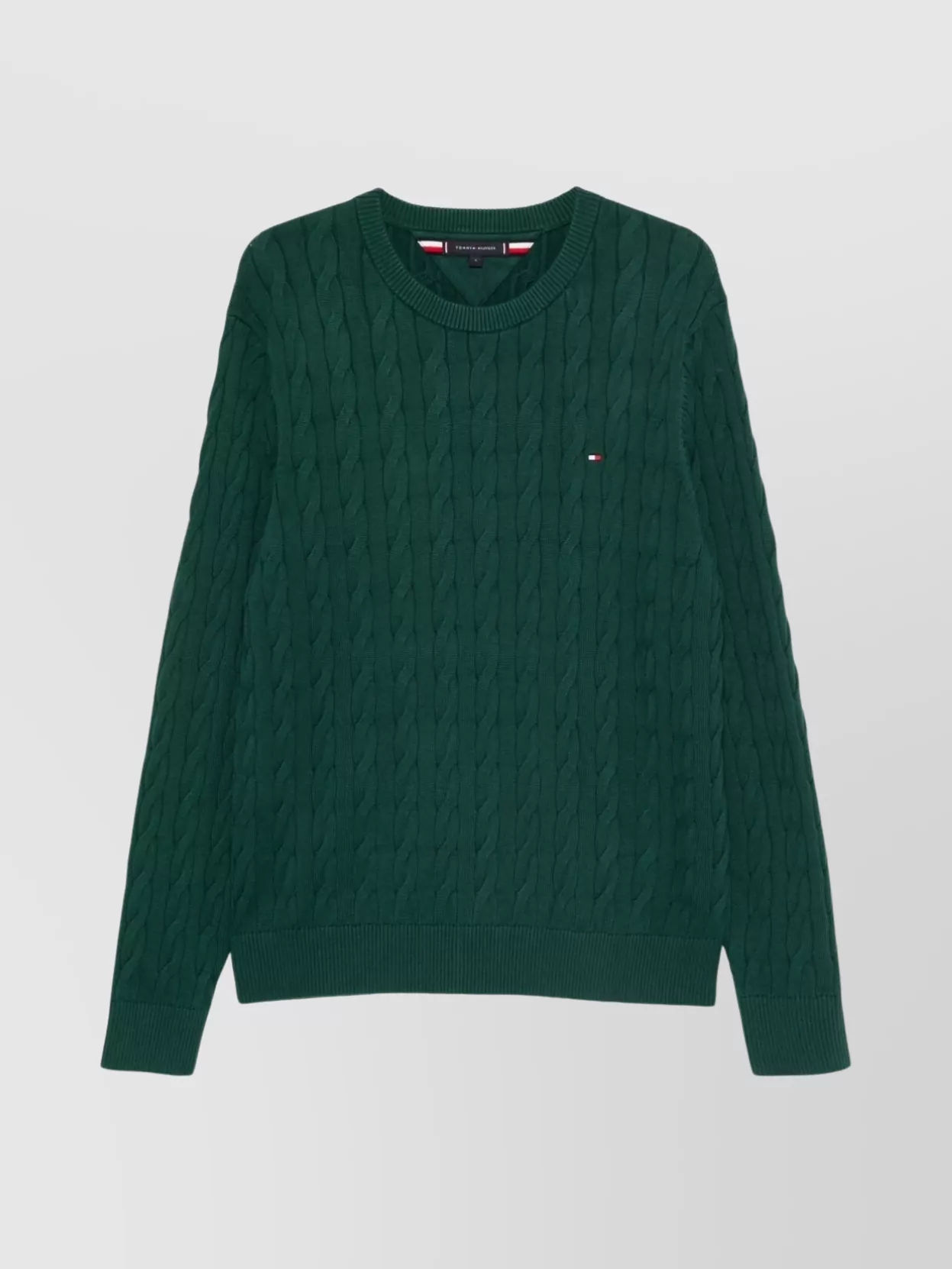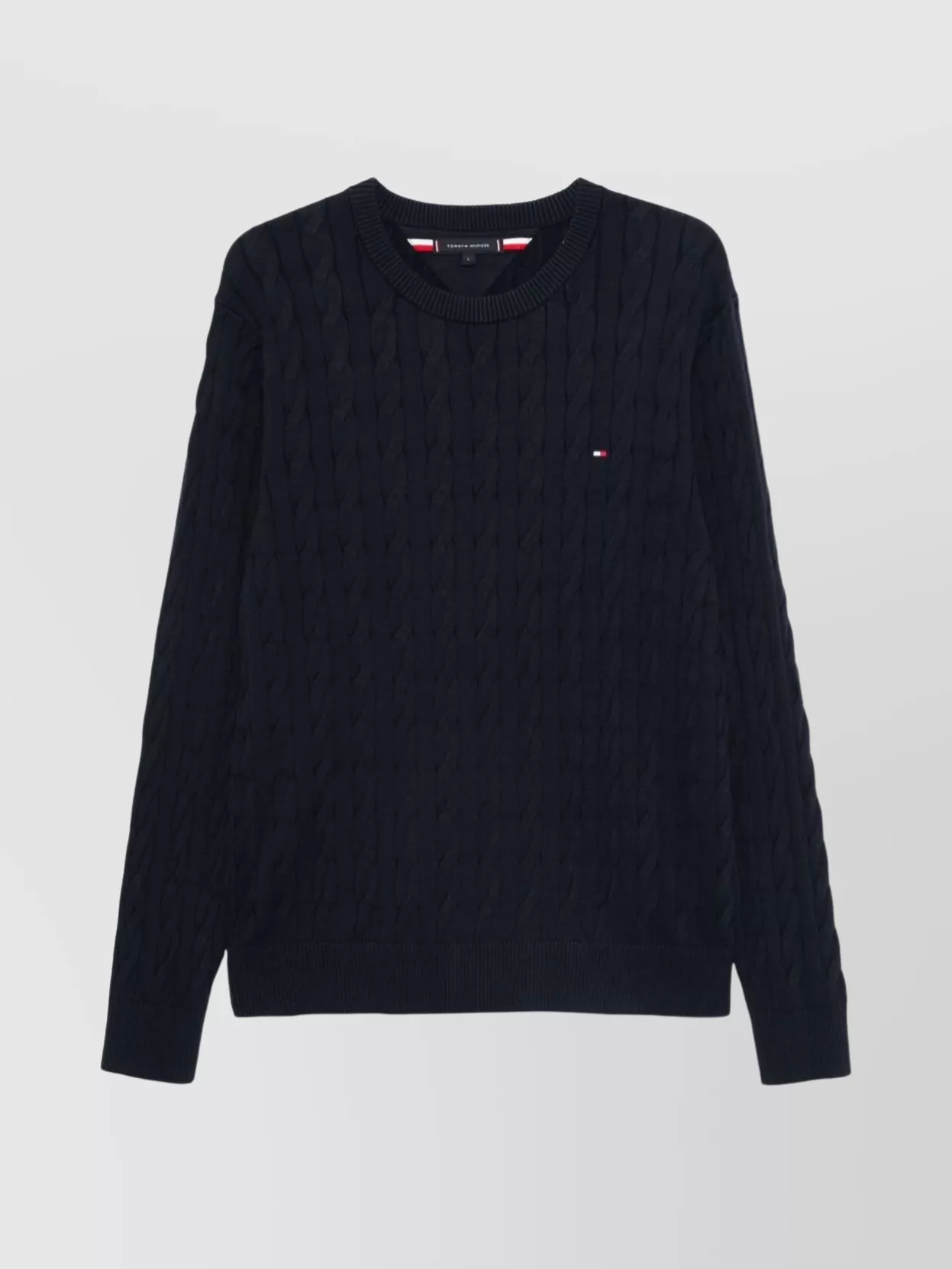 Cable knit crewneck sweater with ribbed cuffs and hem