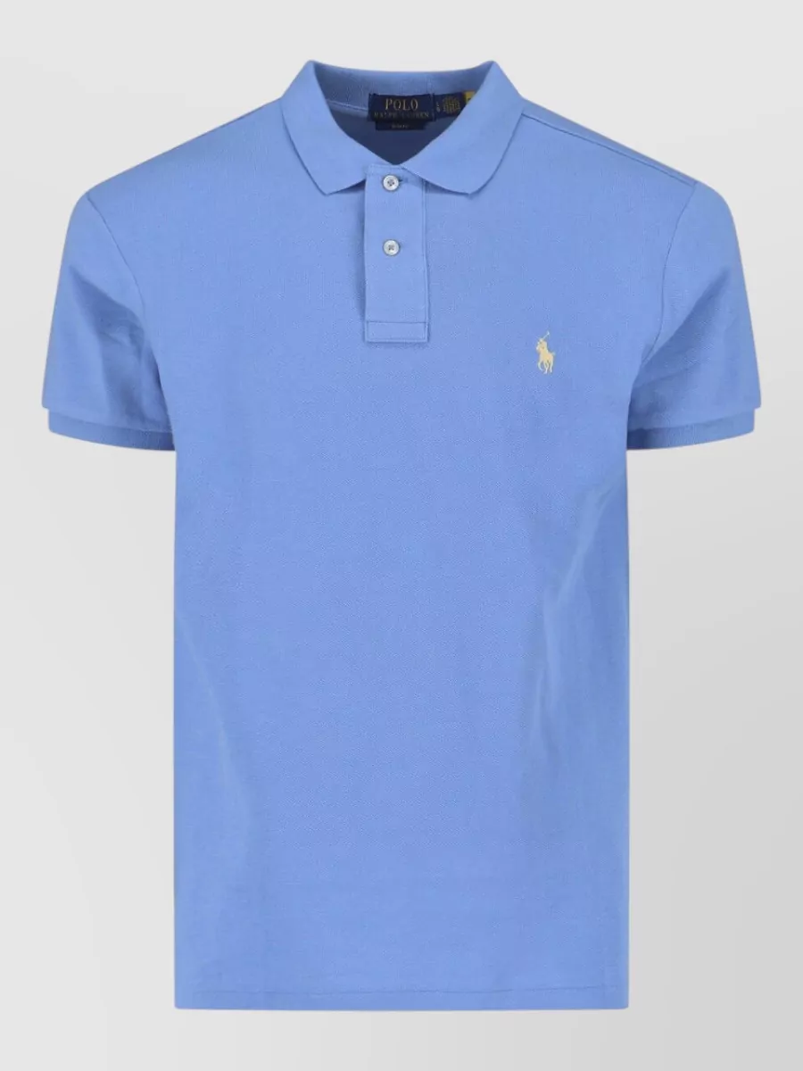Designed for a close fit through the chest and torso with a neat polo collar and short sleeves