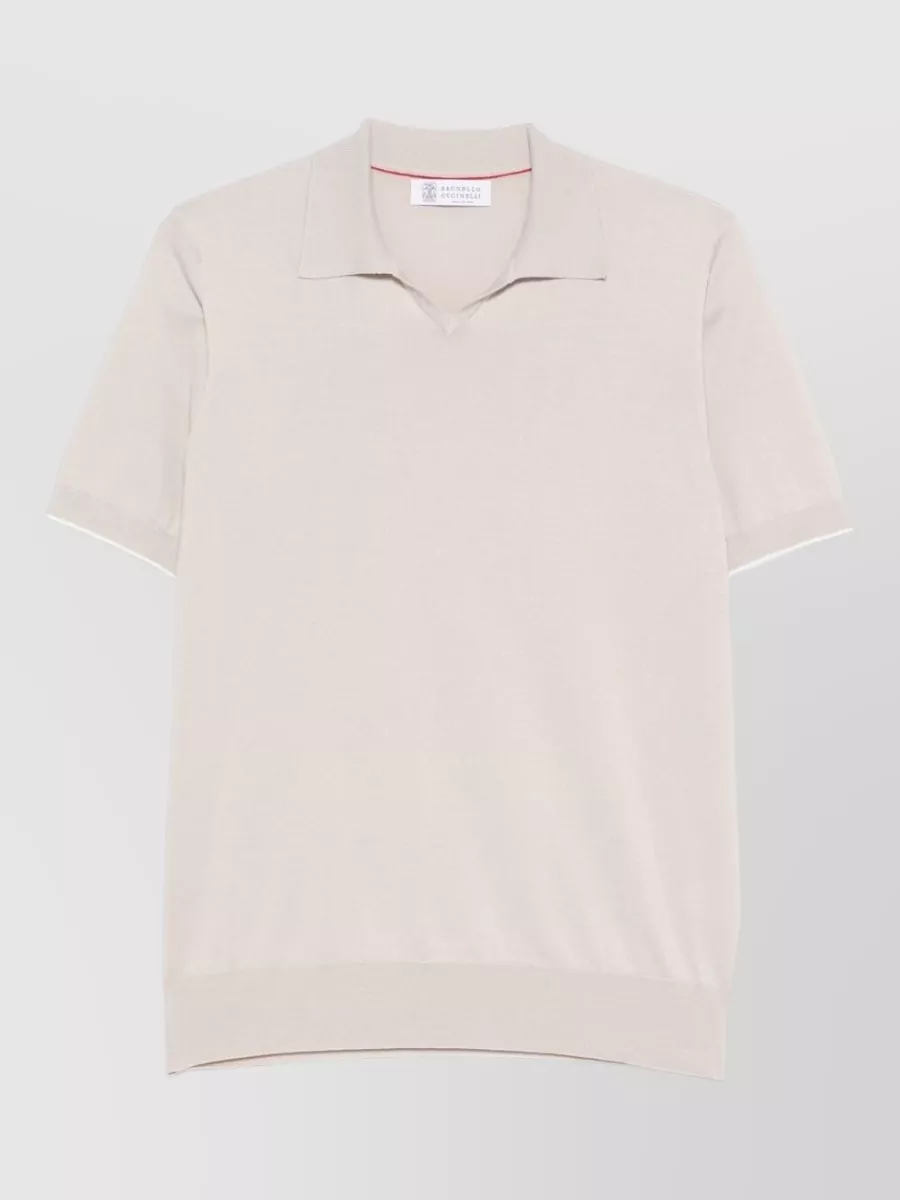 Brunello Cucinelli knit shirt collar short sleeves ribbed trims
