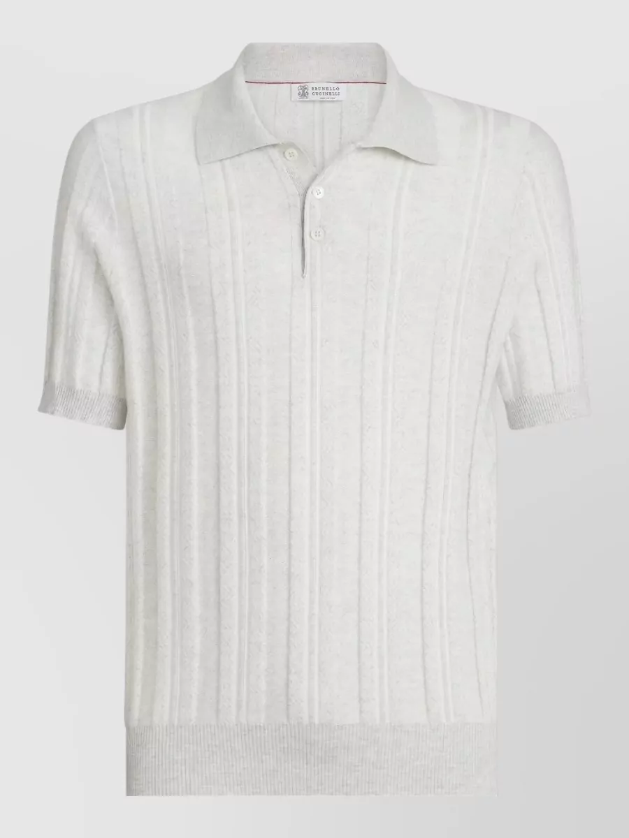 Brunello Cucinelli short sleeve polo shirt with ribbed texture