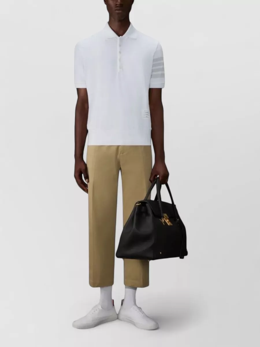 Thom Browne short sleeve rib cuff polo with rwb stripe