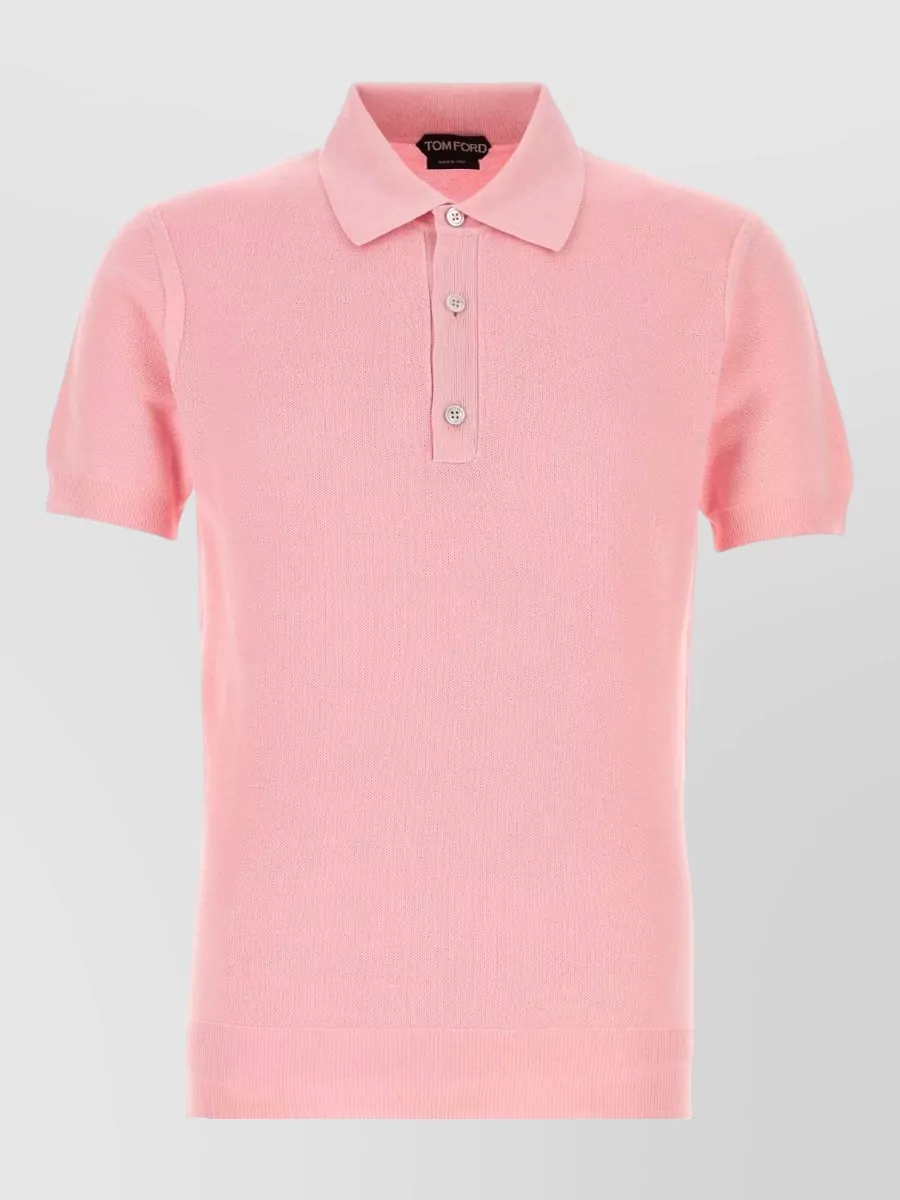 Tom Ford silk cotton pique polo shirt ribbed collar hem