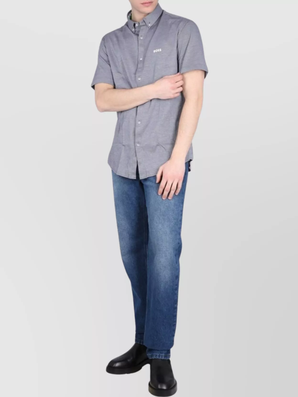 Boss logo shirt featuring button-down collar