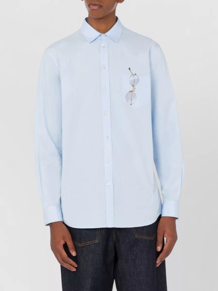 collared shirt with embroidered motif and curved hem