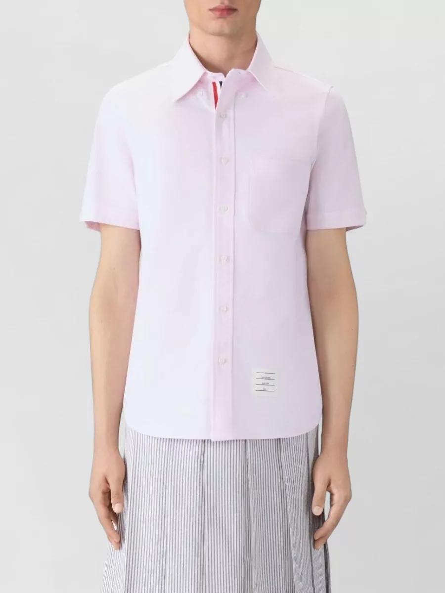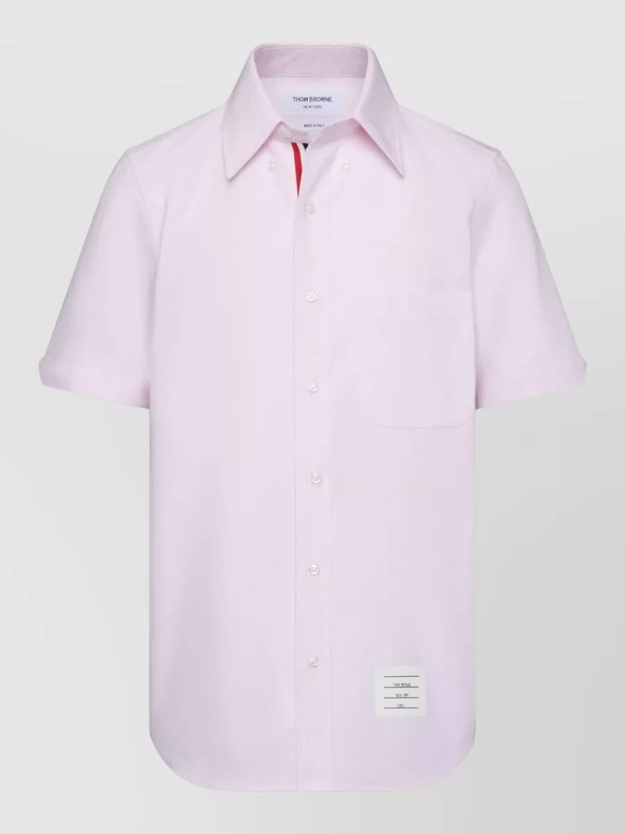Thom Browne collared shirt with front pocket and short sleeves