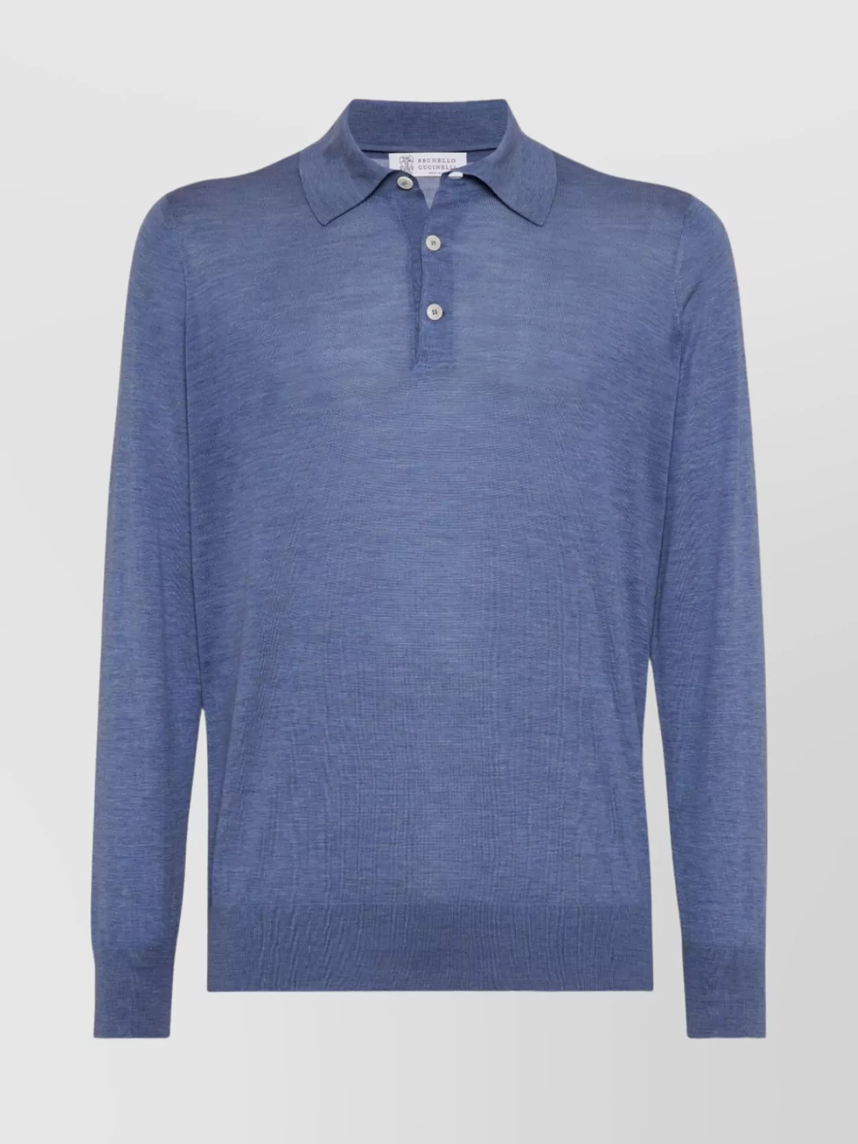 Brunello Cucinelli long sleeve polo sweater with ribbed cuffs and hem