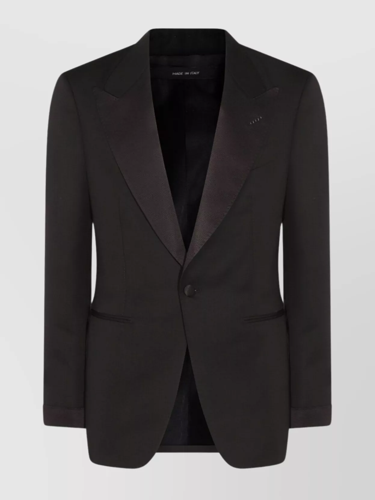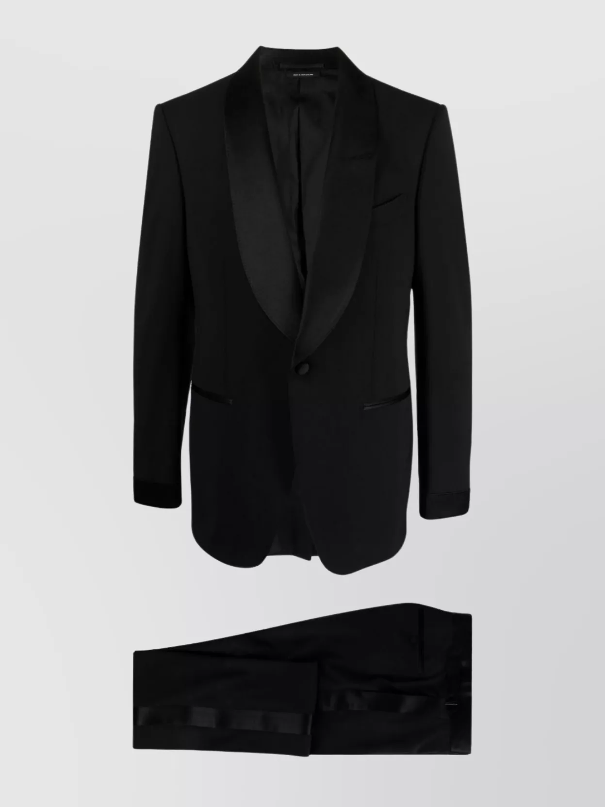 Tom Ford luxe suit with satin lapel and buttoned cuffs