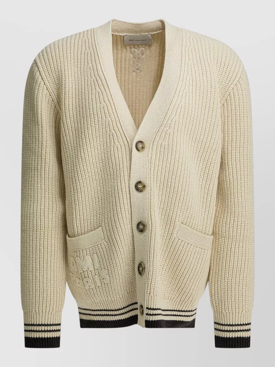 Ami Paris wool blend v-neck ribbed cardigan