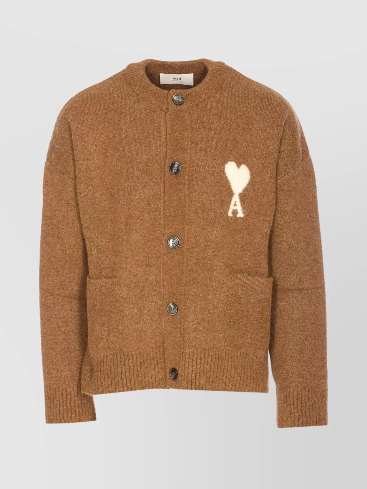 Ami Paris crewneck cardigan with long sleeves and pockets