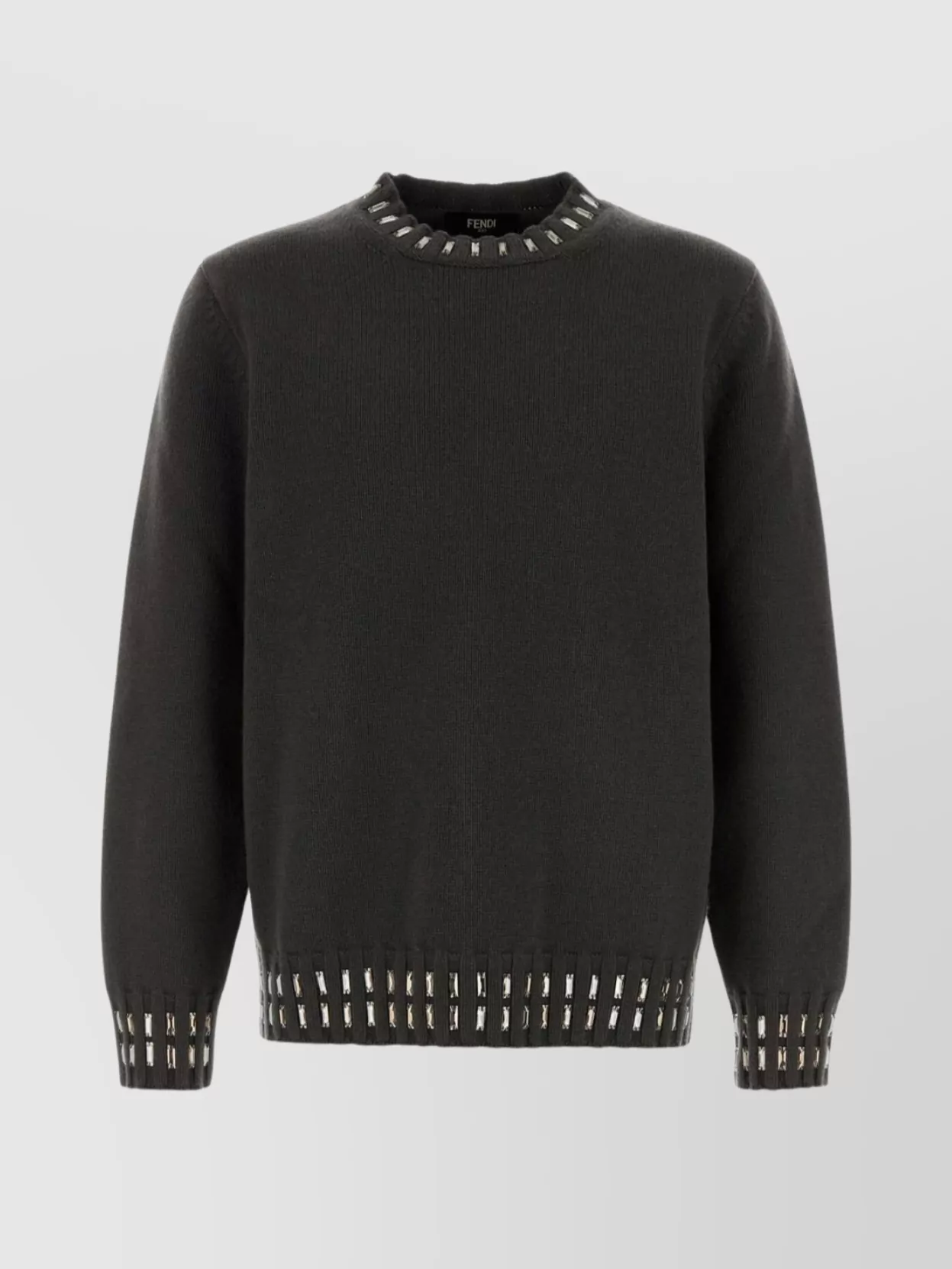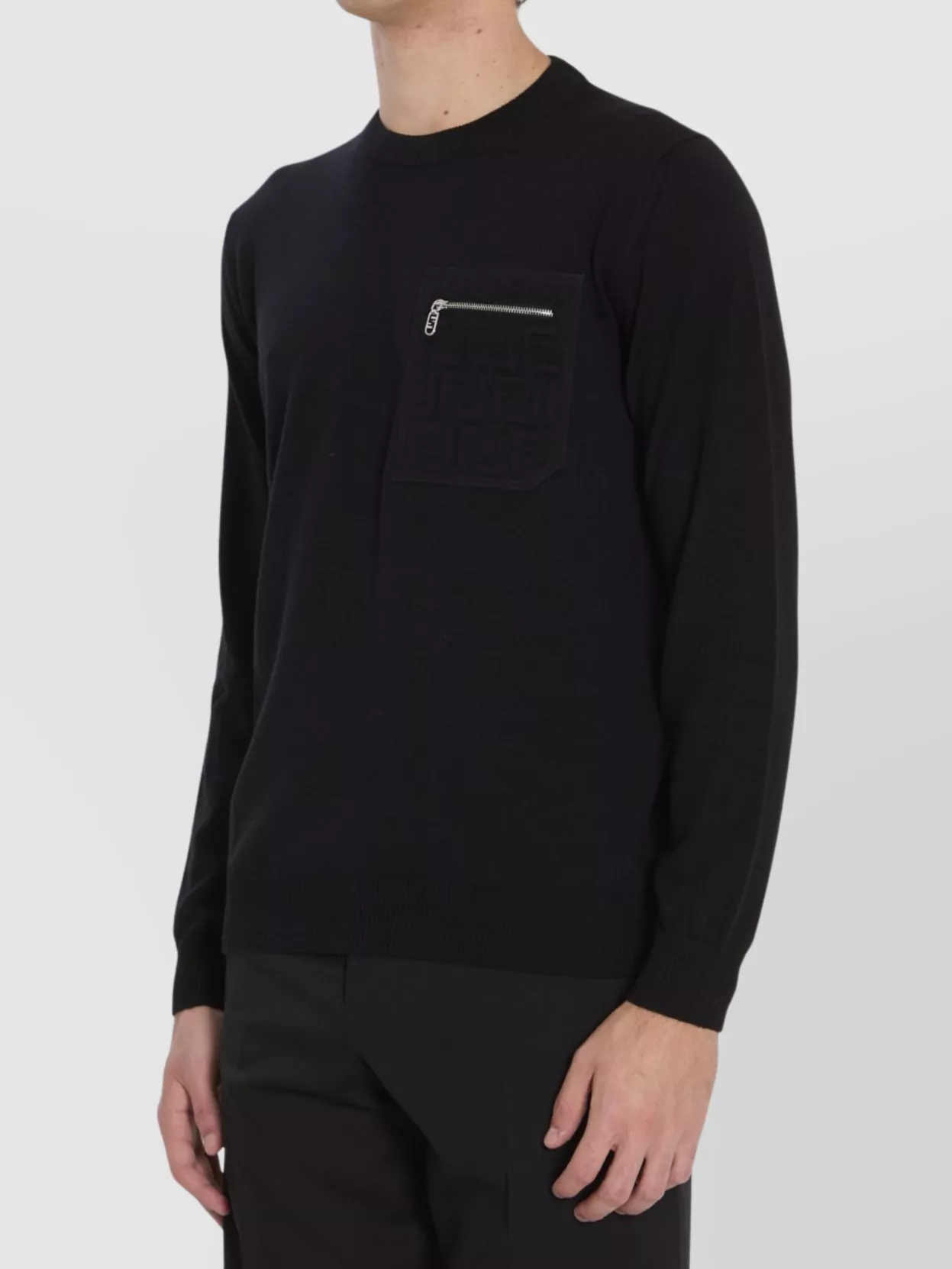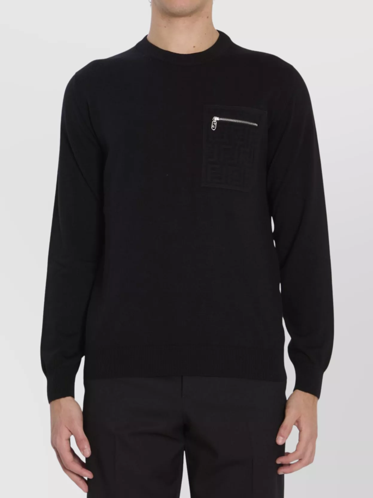 Fendi stretch wool polo shirt with ribbed cuffs and hem