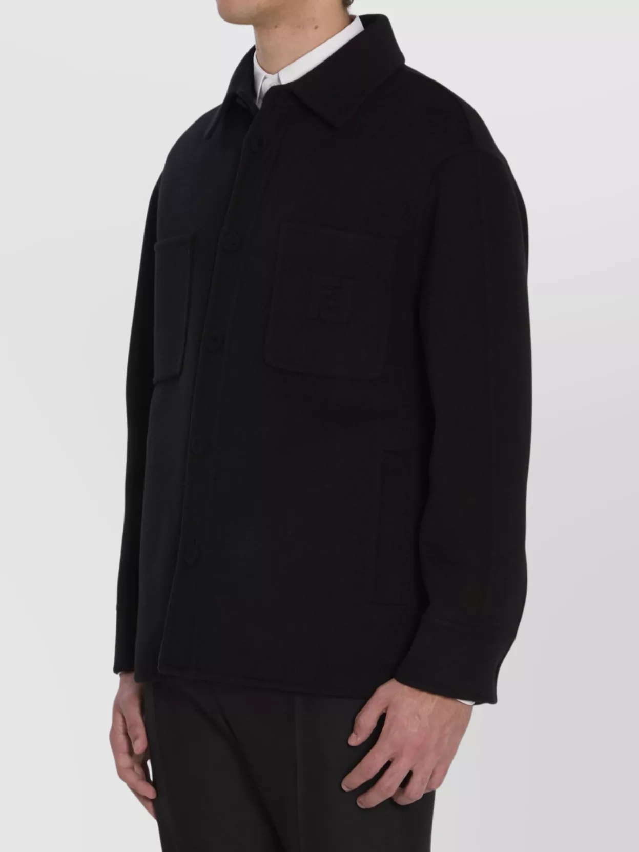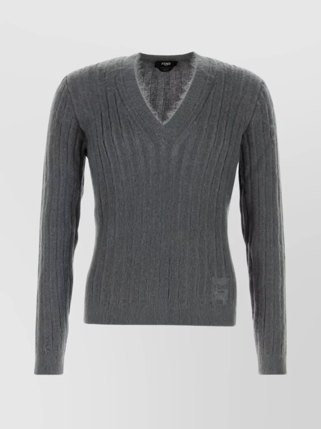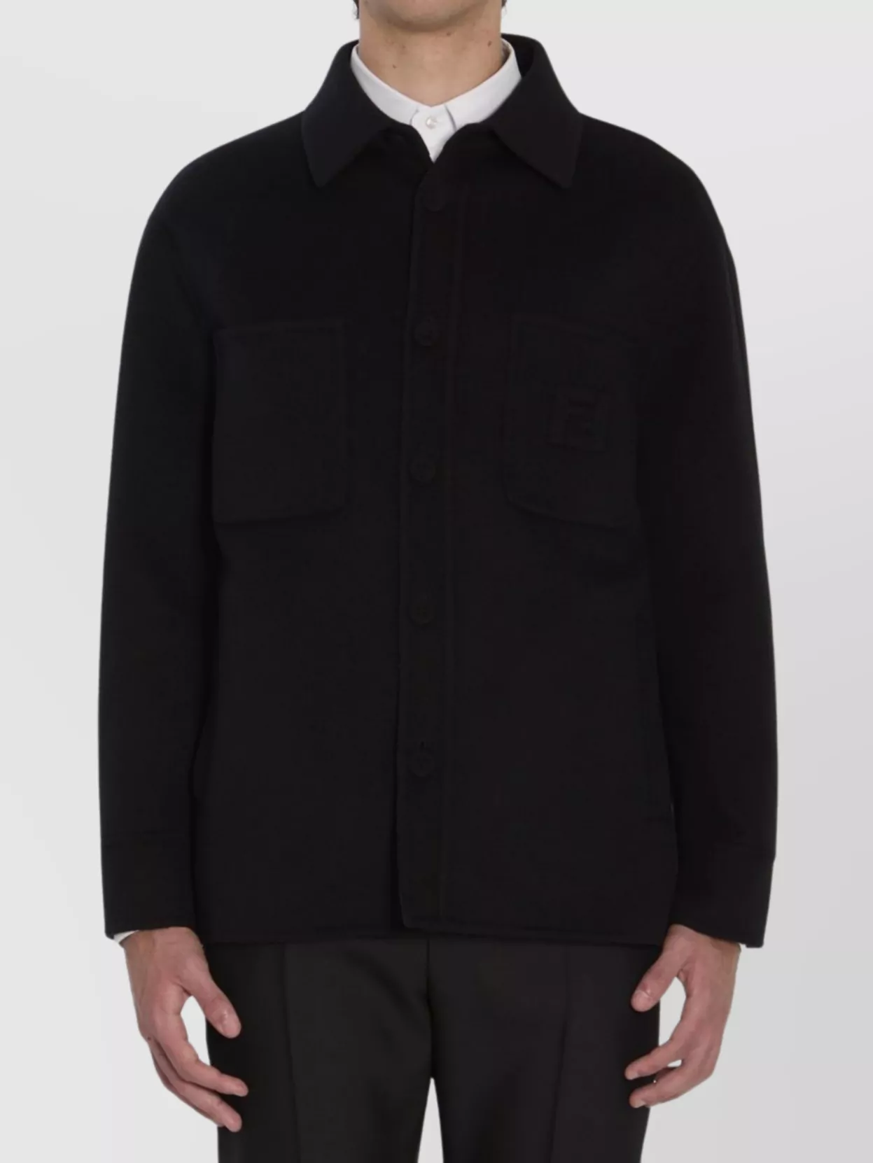 Fendi stretch wool polo shirt with ribbed cuffs and hem