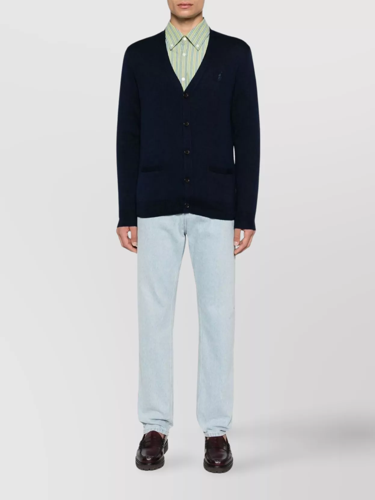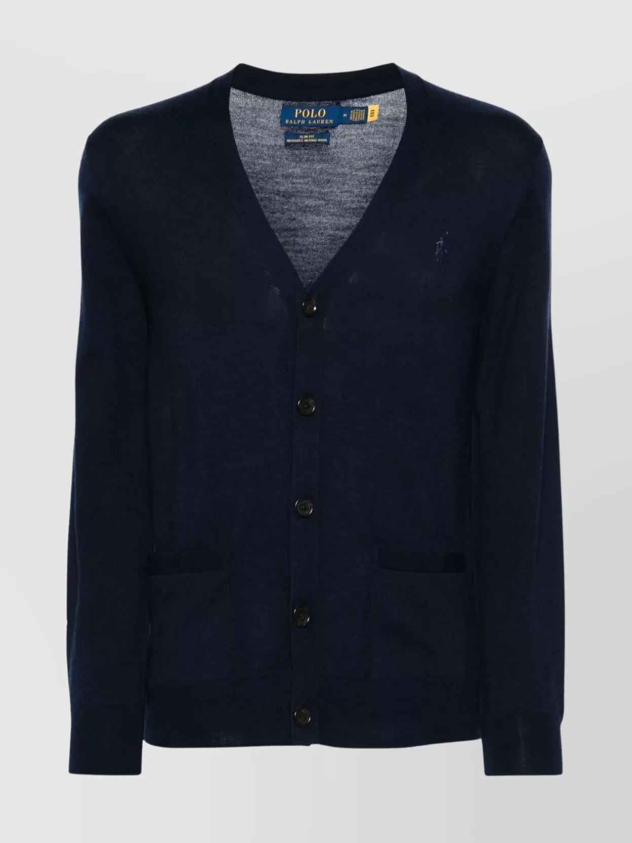 Ralph Lauren ribbed v-neck sweater patch pockets