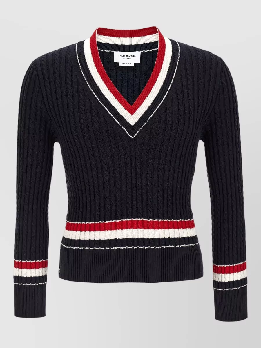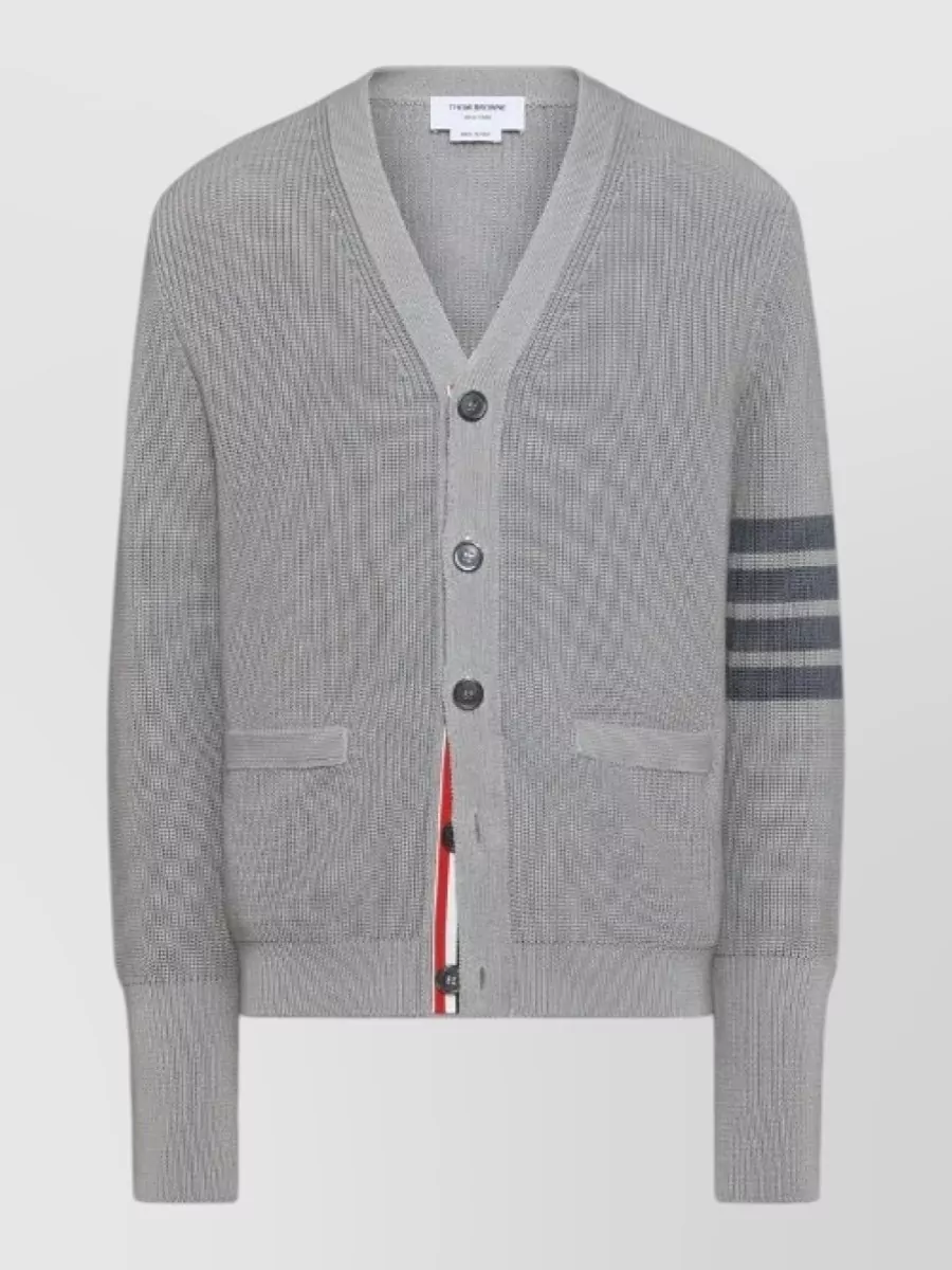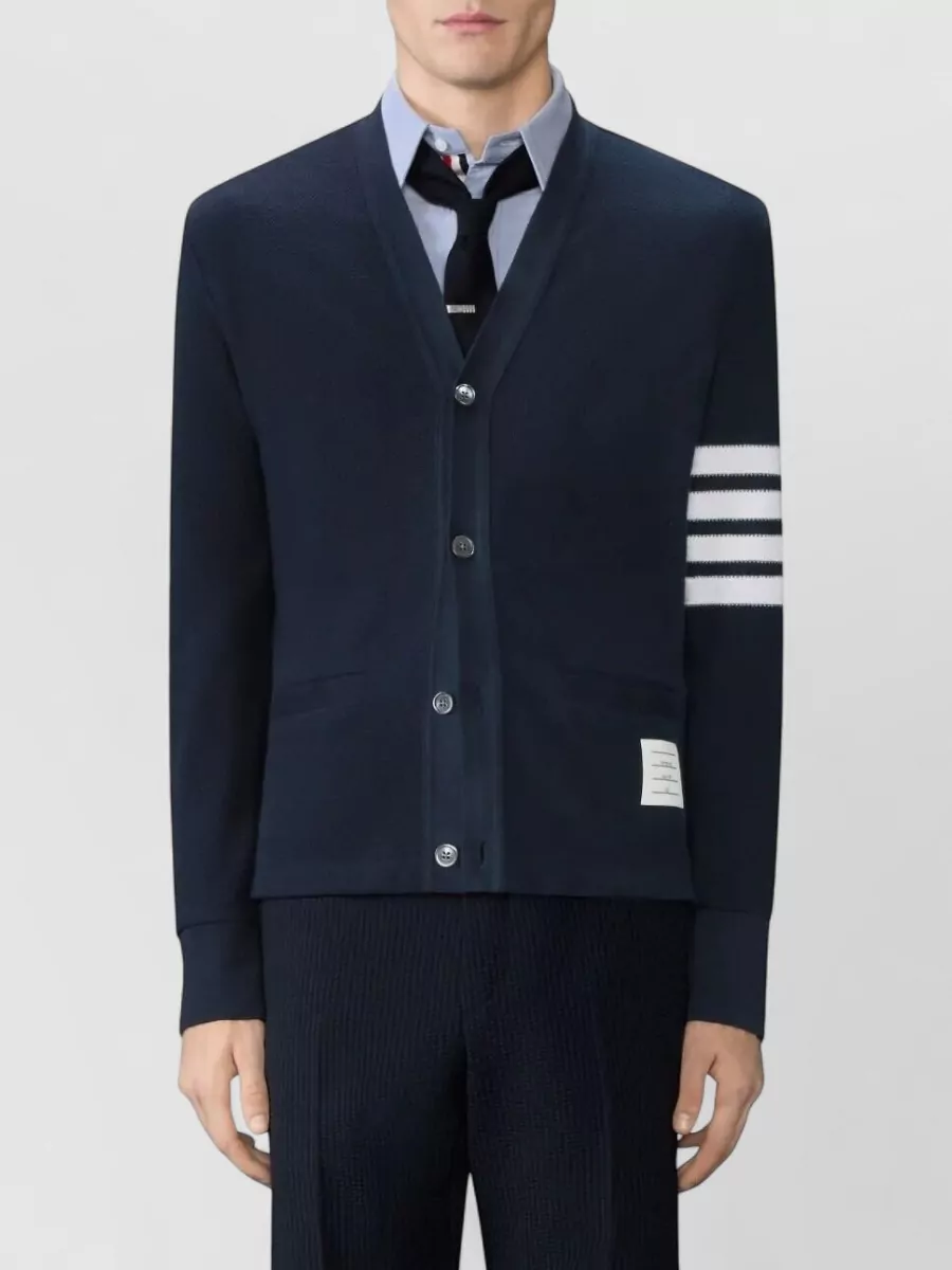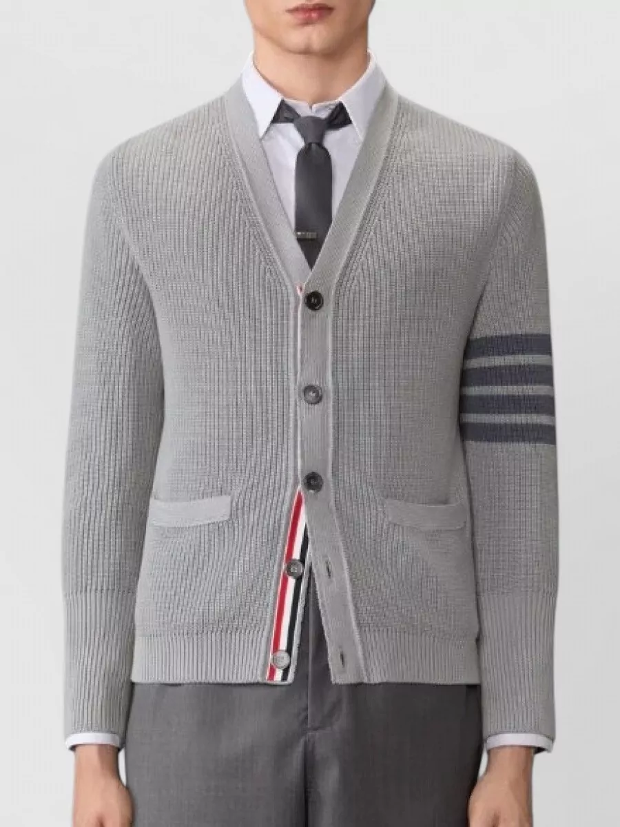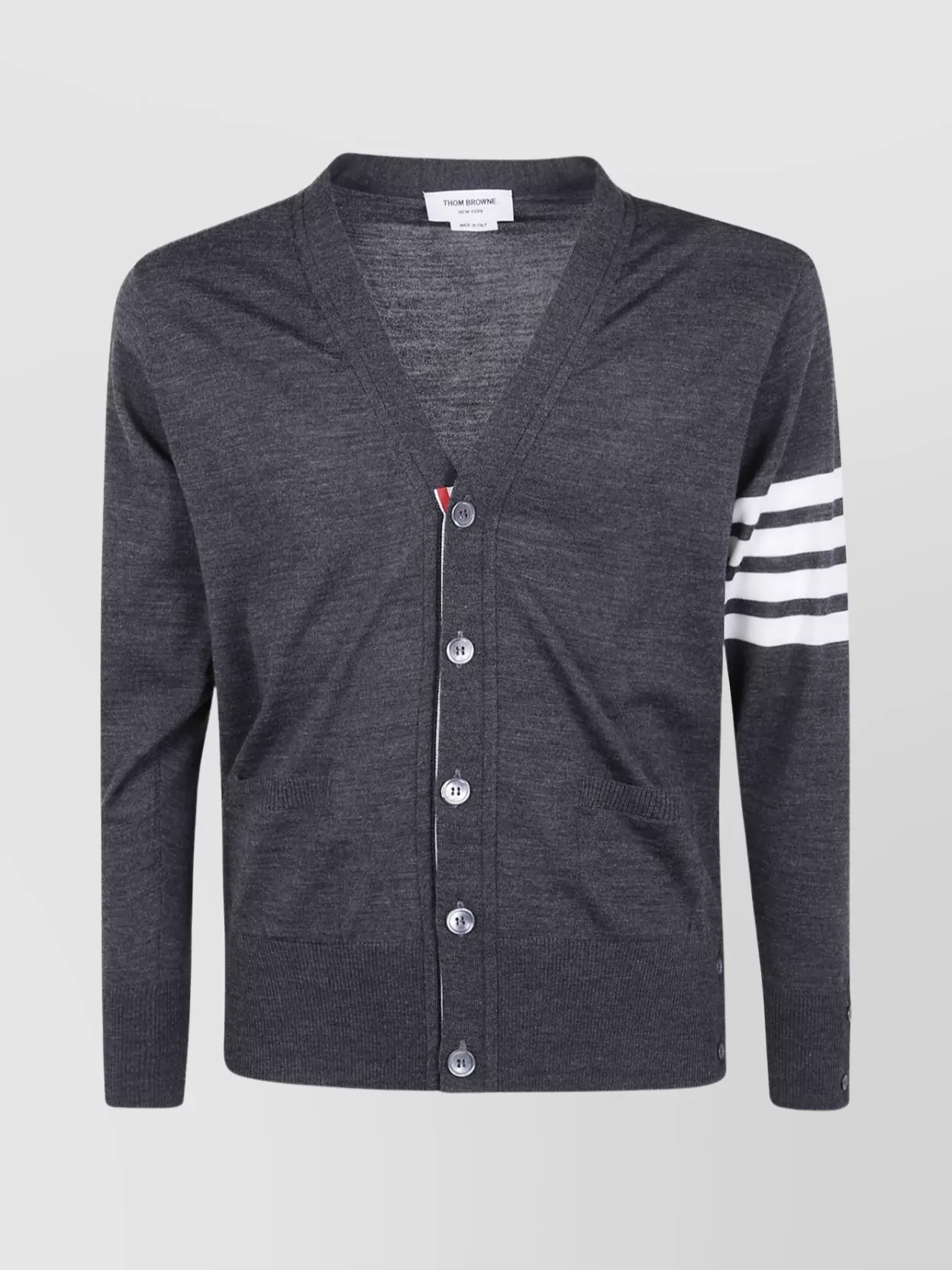 Thom Browne v-neck cardigan merino wool 4bar stripes