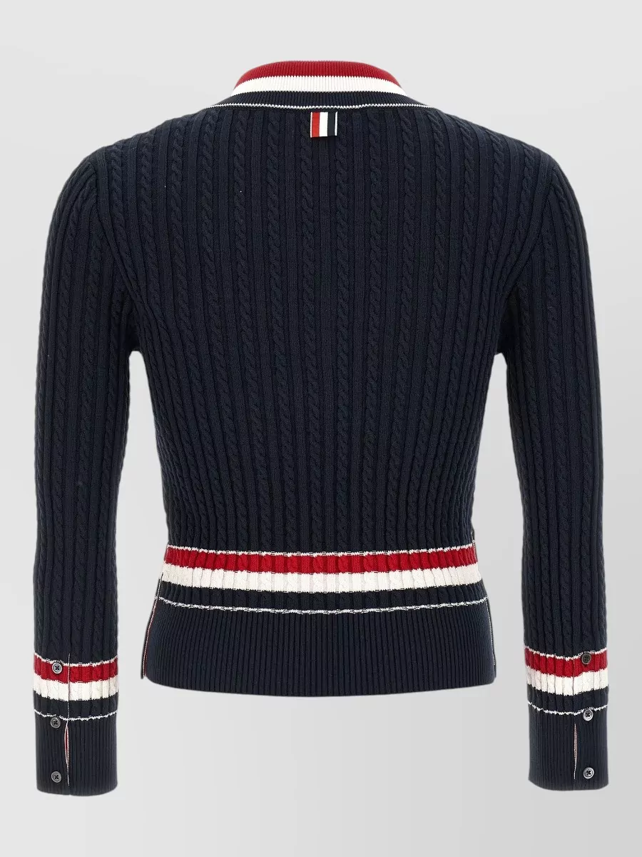 Thom Browne ribbed hem crewneck striped sleeve button cuffs