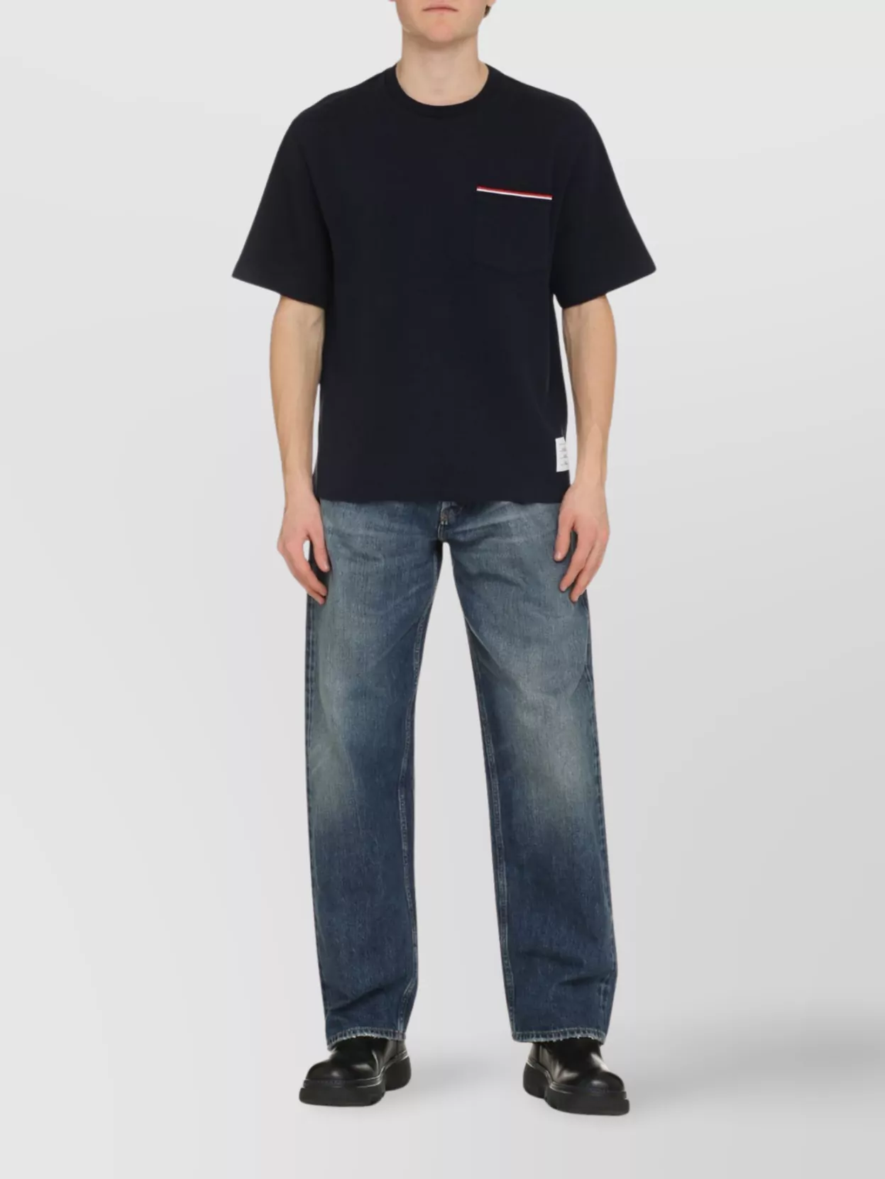 Thom Browne oversized t-shirt with contrast trim and patch pocket