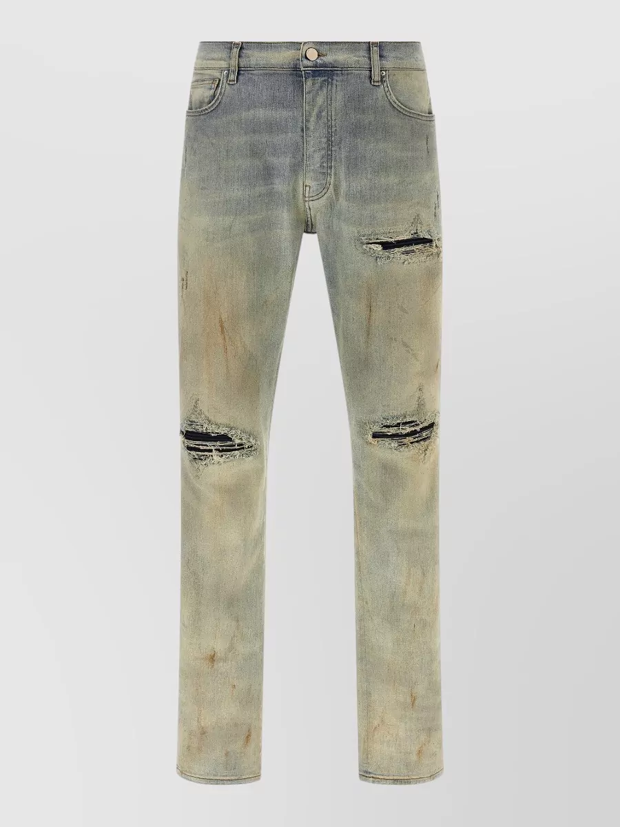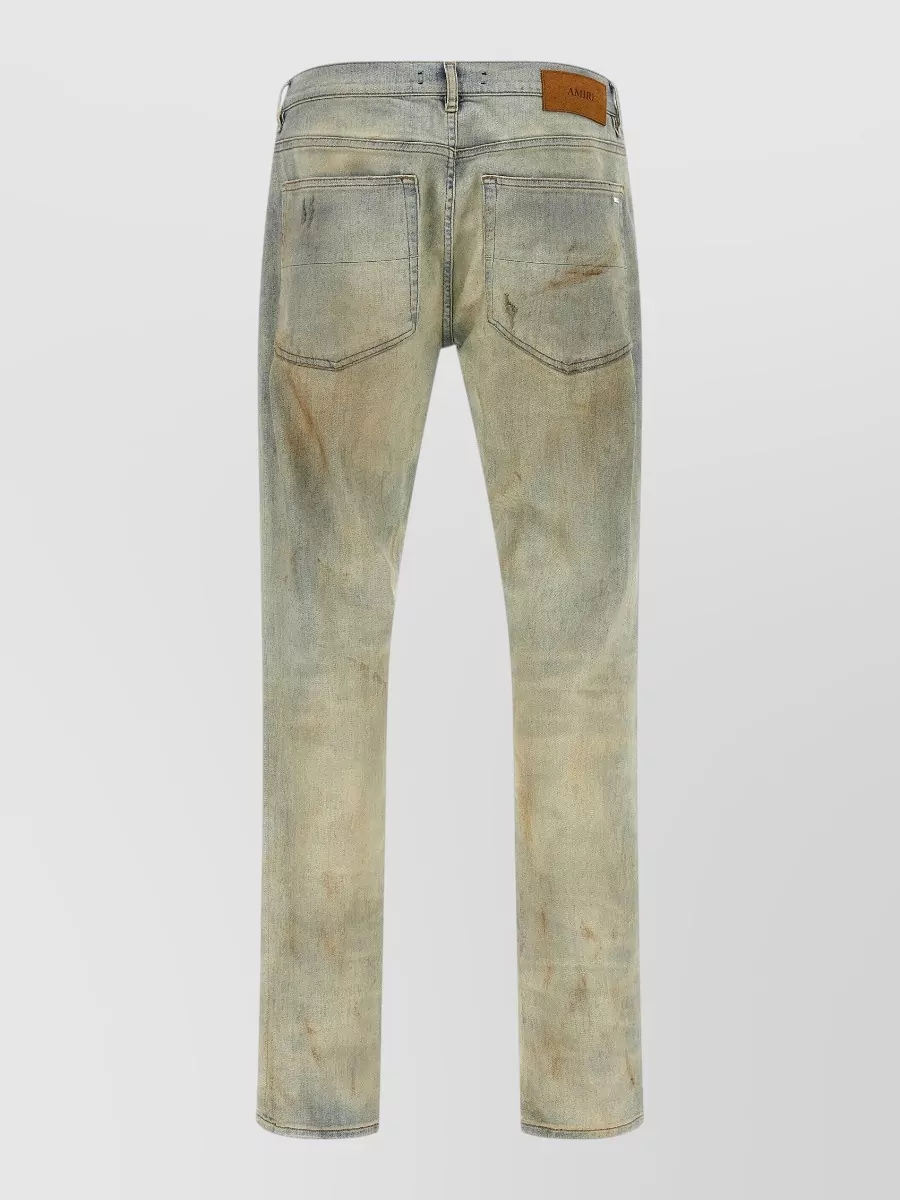 Amiri mx1 ultrasuede distressed five pocket trousers