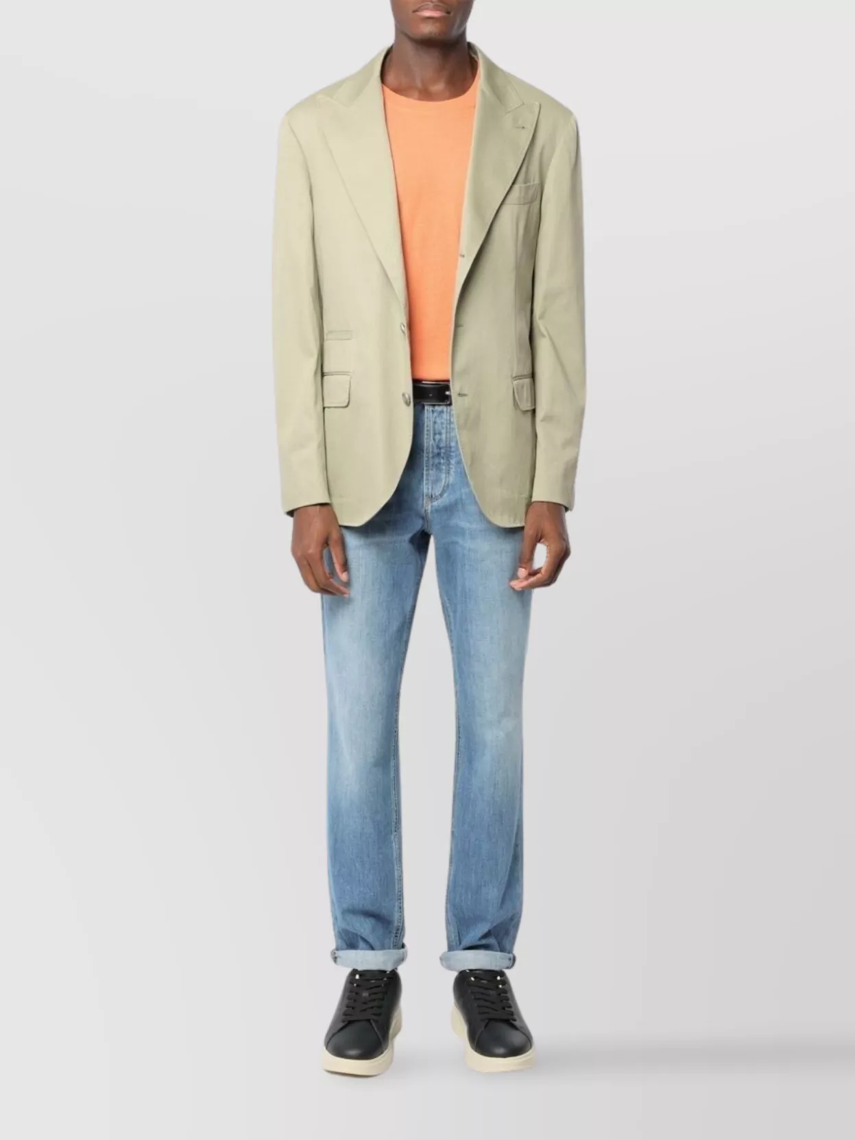 rolled cuffs five-pocket belt loops trousers