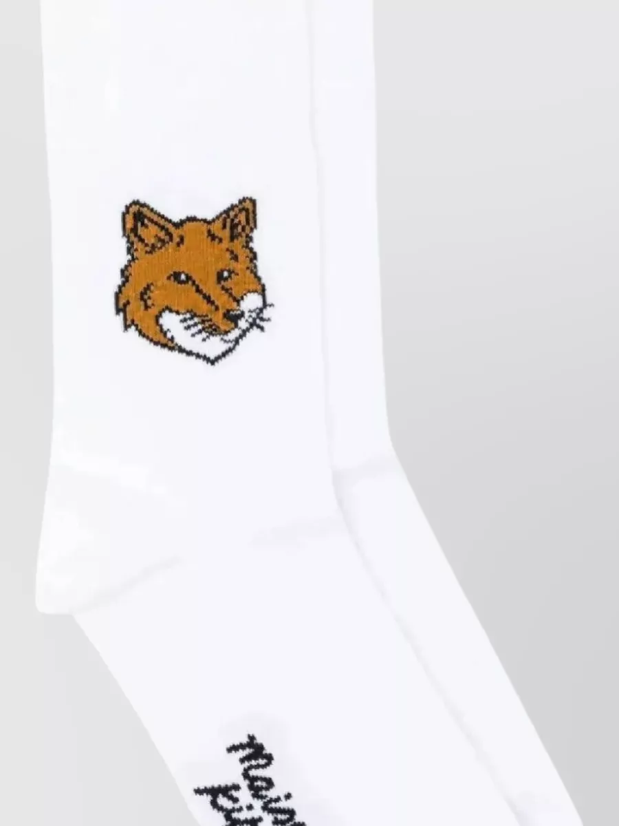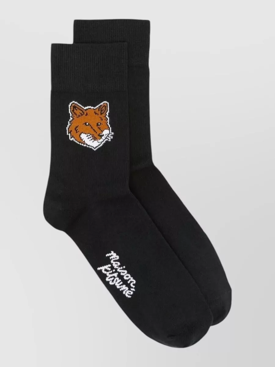 Maison Kitsuné fox head socks embroidered ribbed design