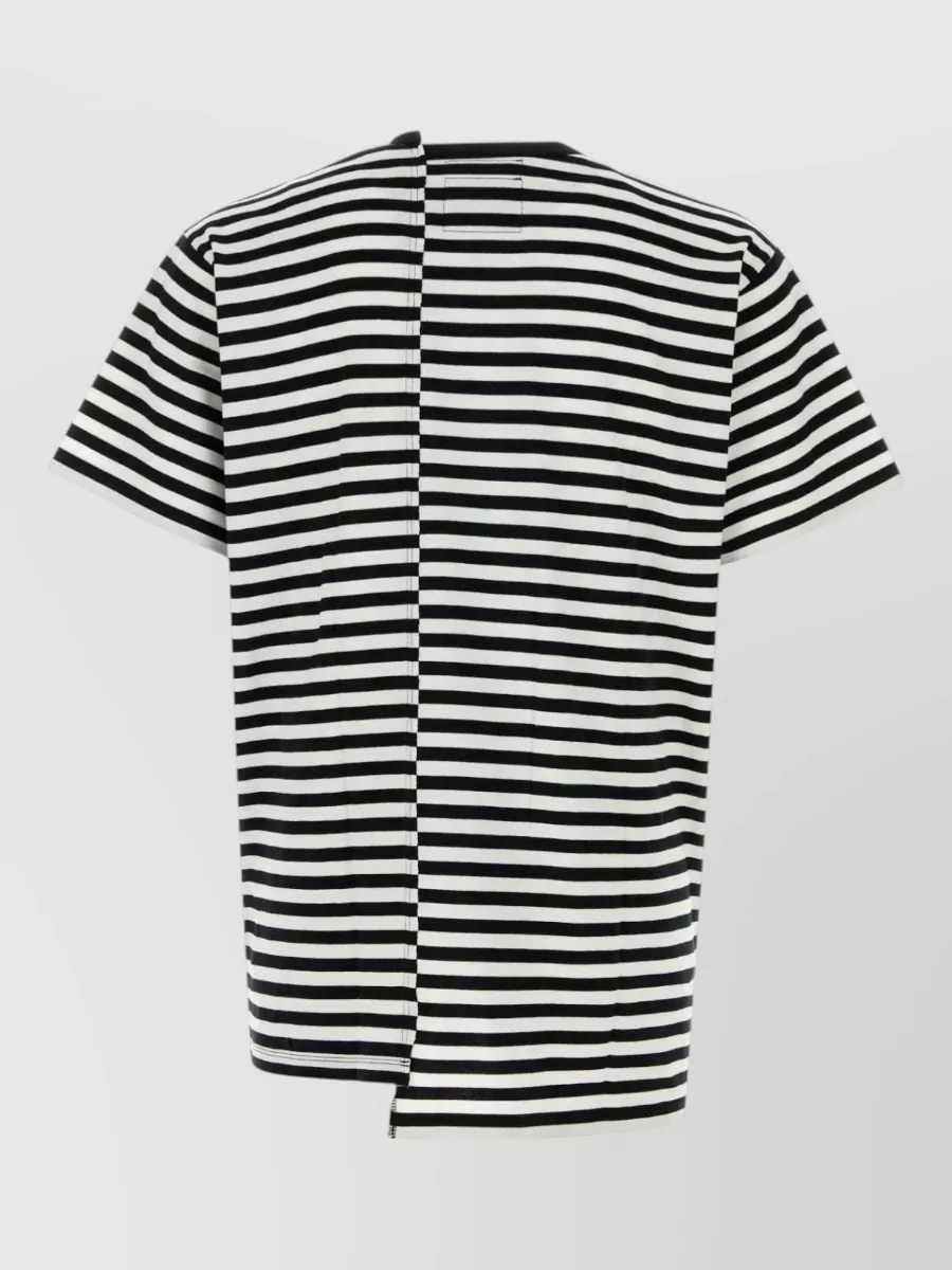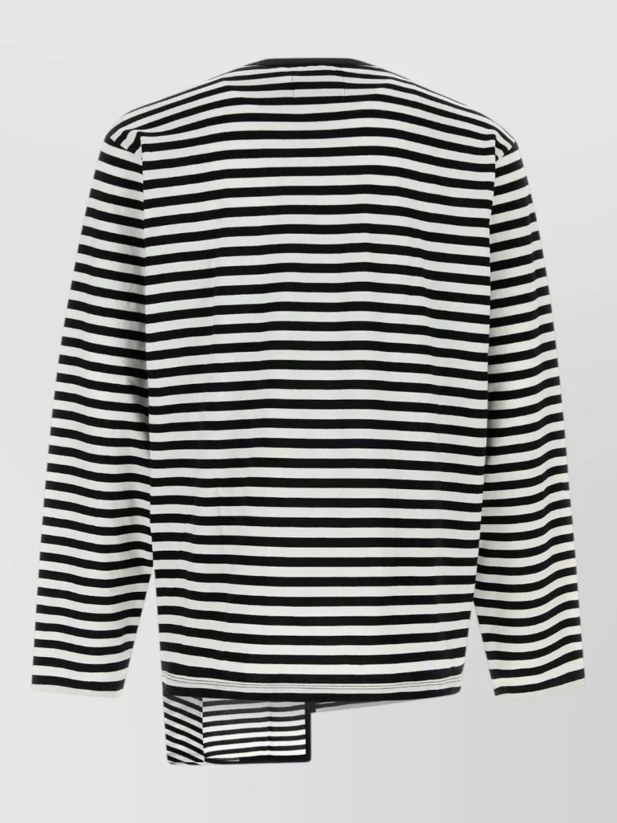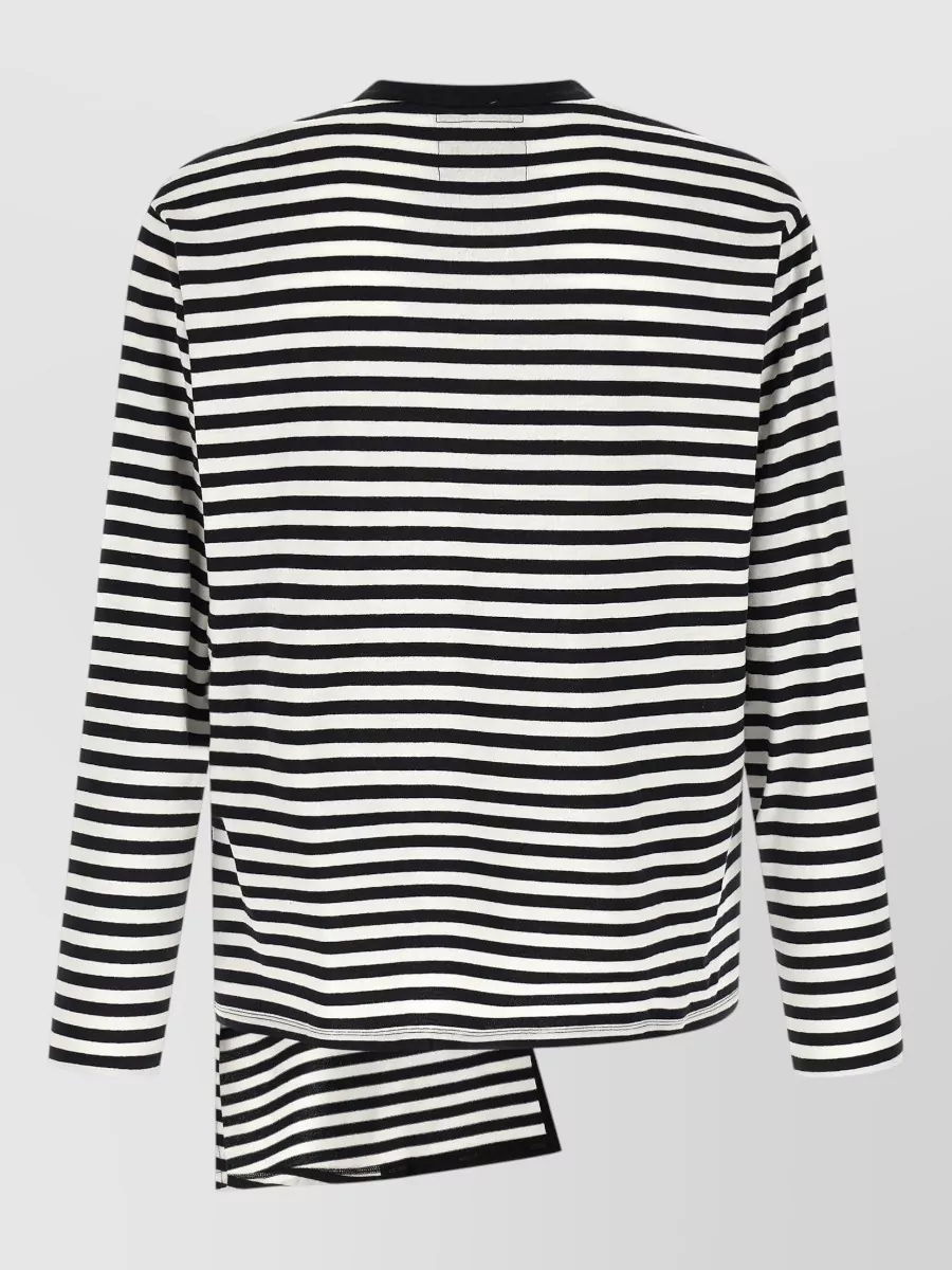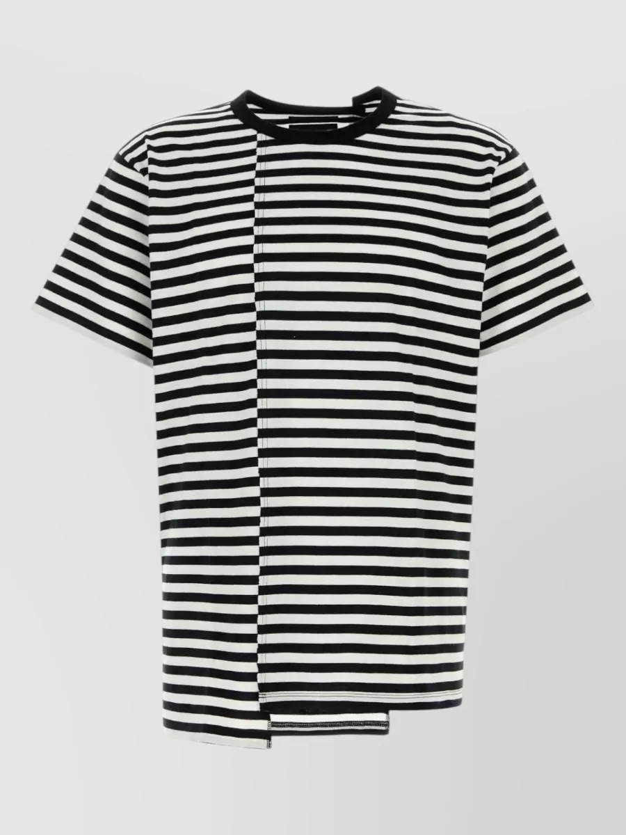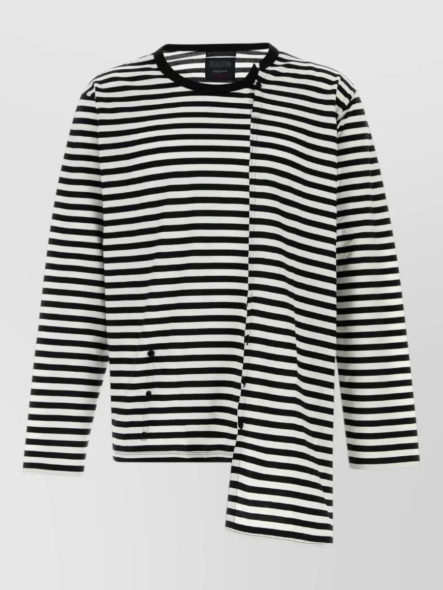 Yohji Yamamoto cotton t-shirt asymmetrical crew neck stripes buttons