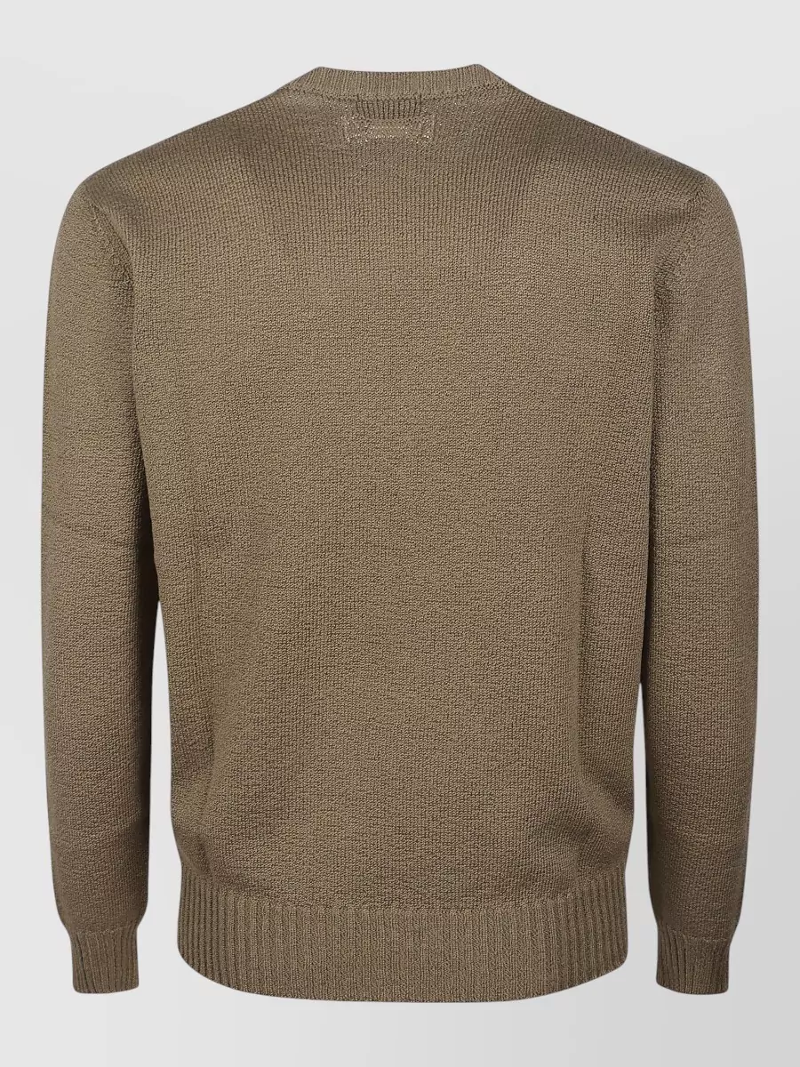 crewneck sweater textured knit ribbed hem cuffs