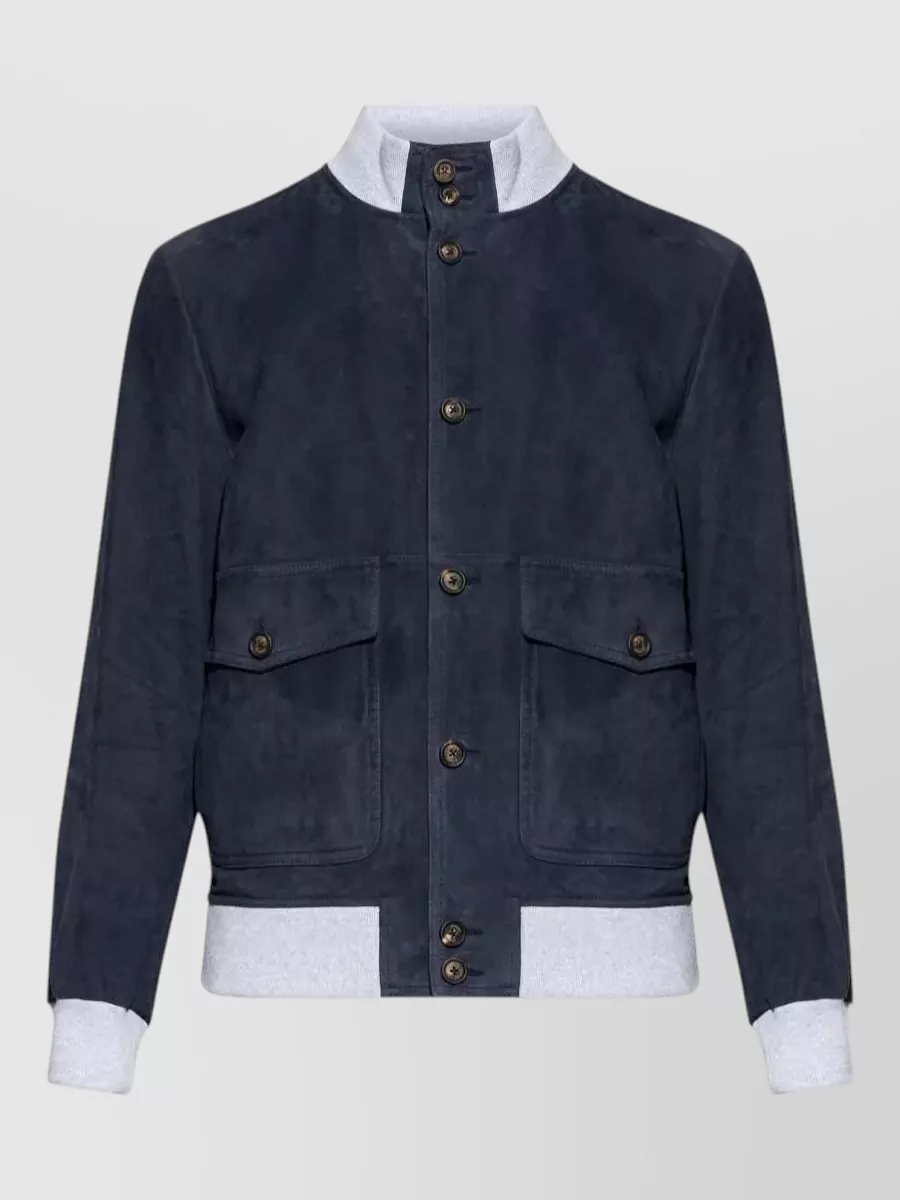 ribbed collar jacket front pockets