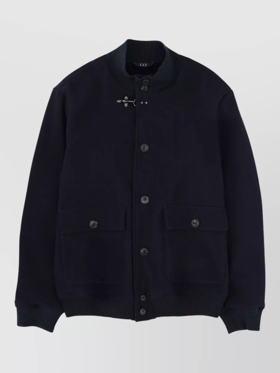 Fay jacket front pockets ribbed collar cuffs hem