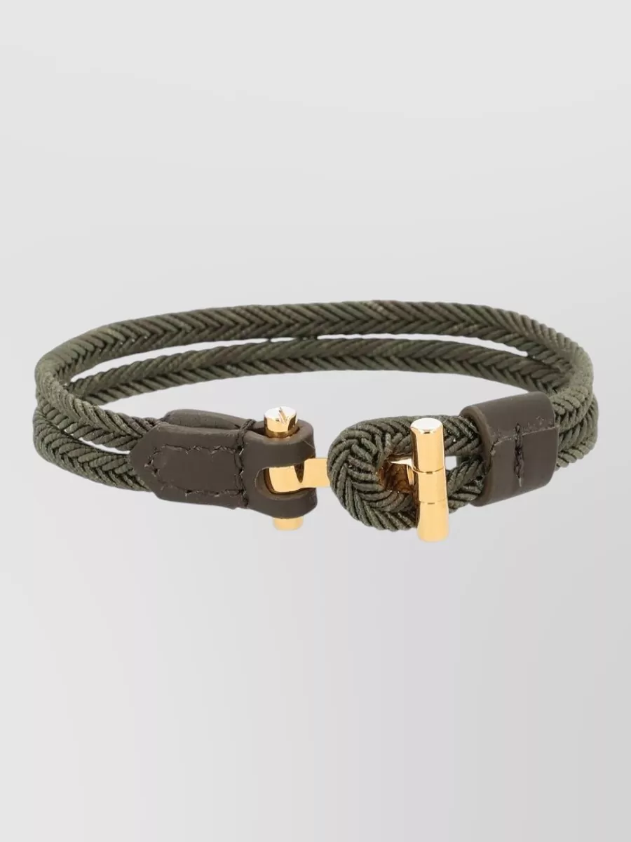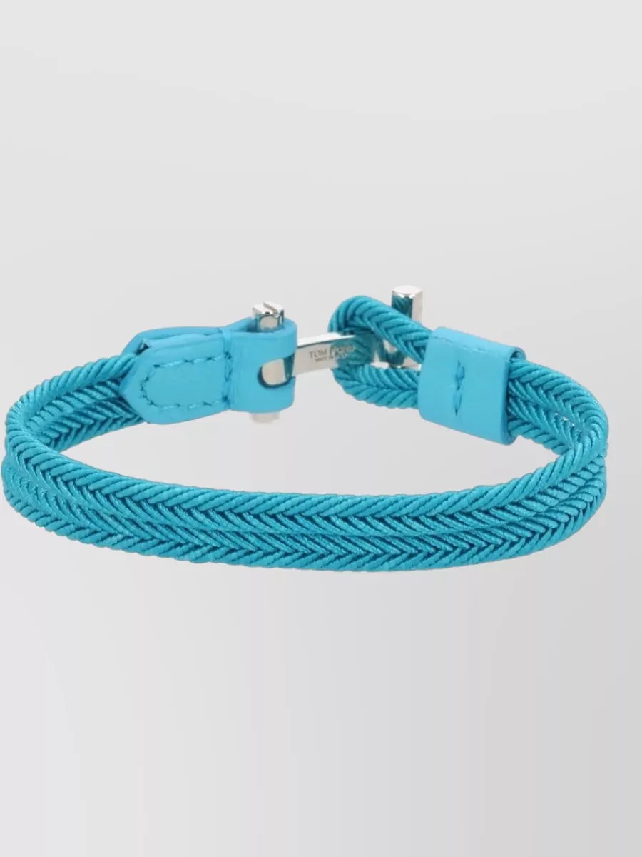 Tom Ford leather t-plate woven bracelet with braided pattern