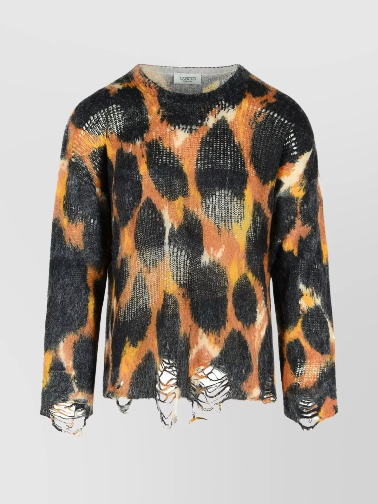 Laneus animal print distressed baby alpaca sweater