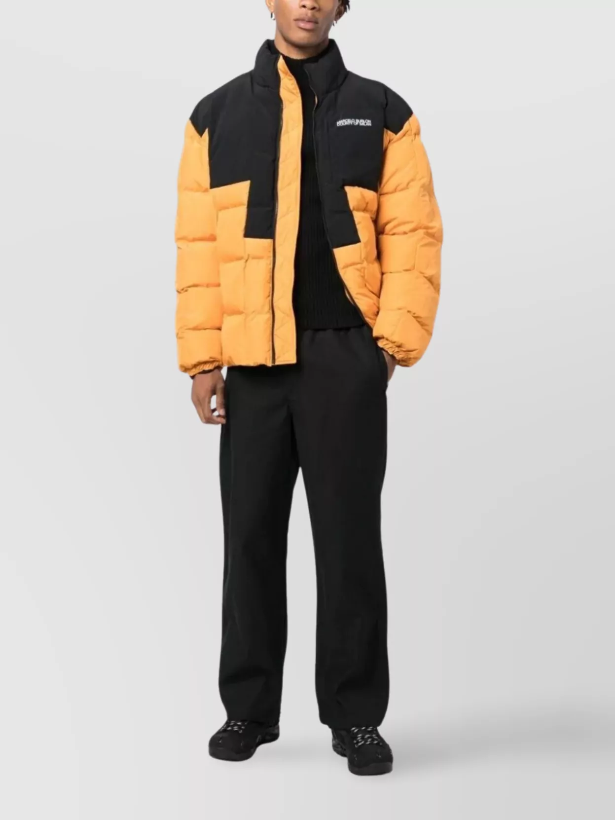 logo block puffer jacket with chest pocket
