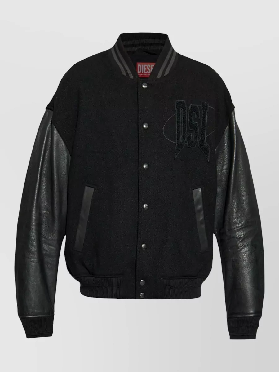 Diesel jacket leather sleeves side pockets ribbed cuffs