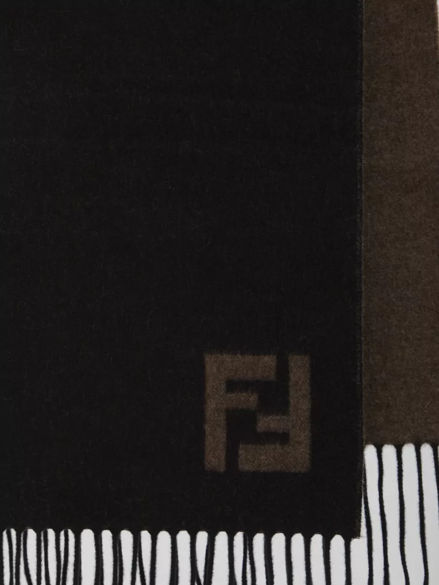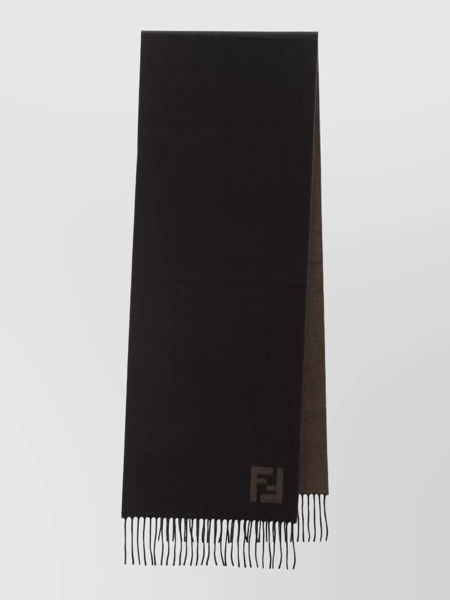 Fendi rectangular wool cashmere scarf fringes