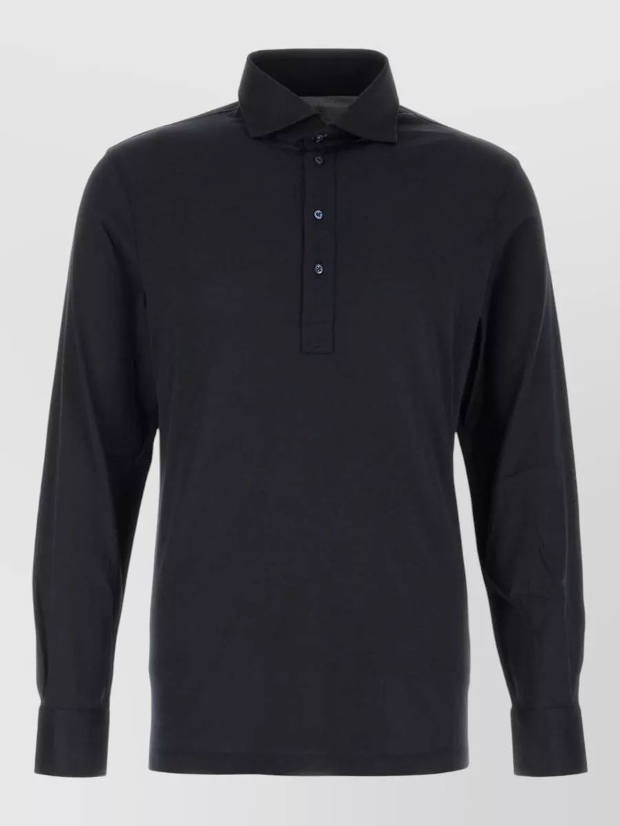 long sleeve collared cotton polo shirt