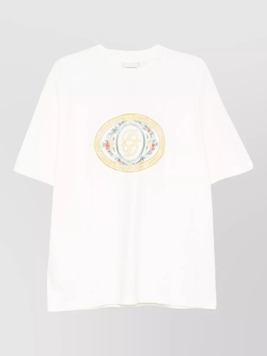 logo graphic print t-shirt with floral detail