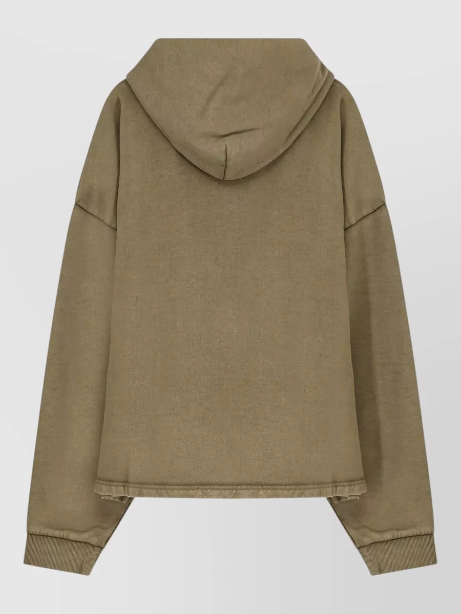 Represent hooded sweatshirt with ribbed cuffs and hem