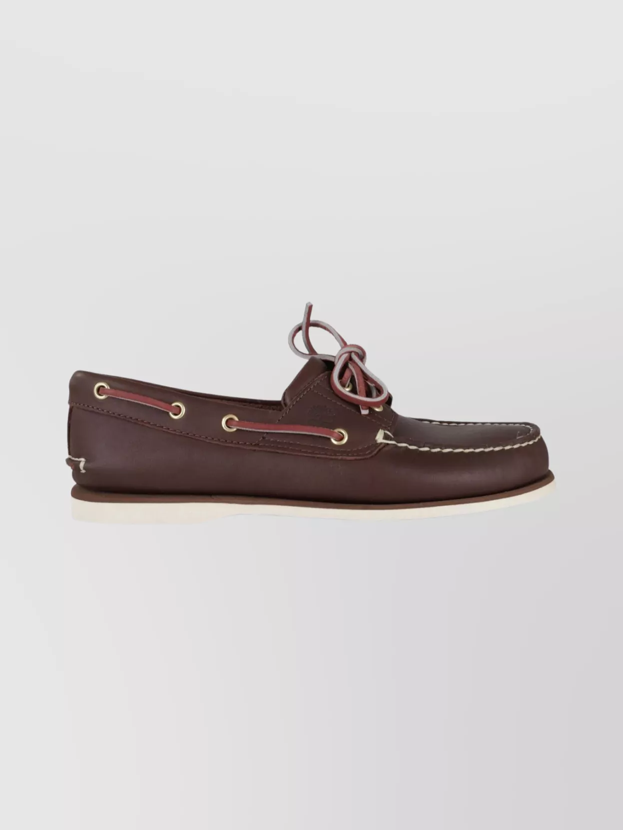 Timberland boat shoes with flat rubber sole and eyelet detailing