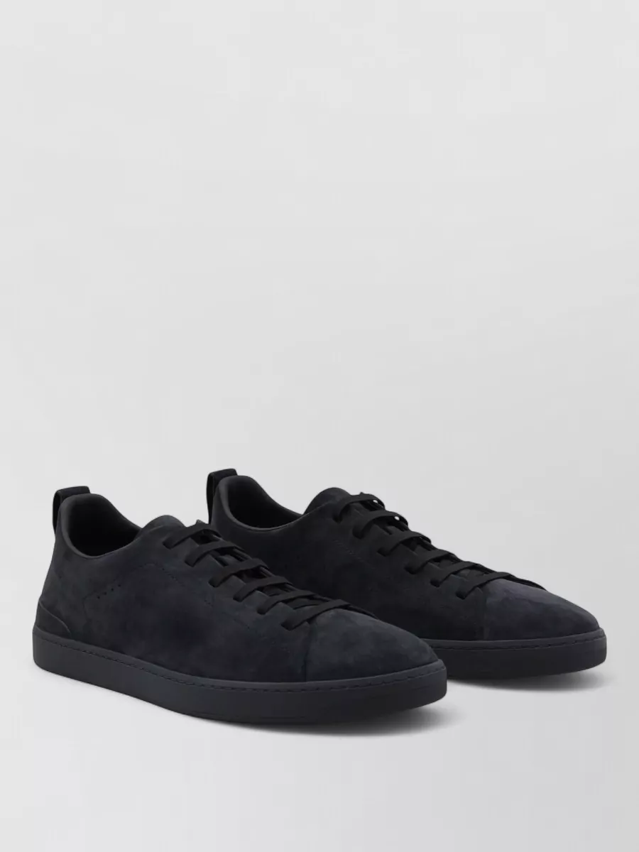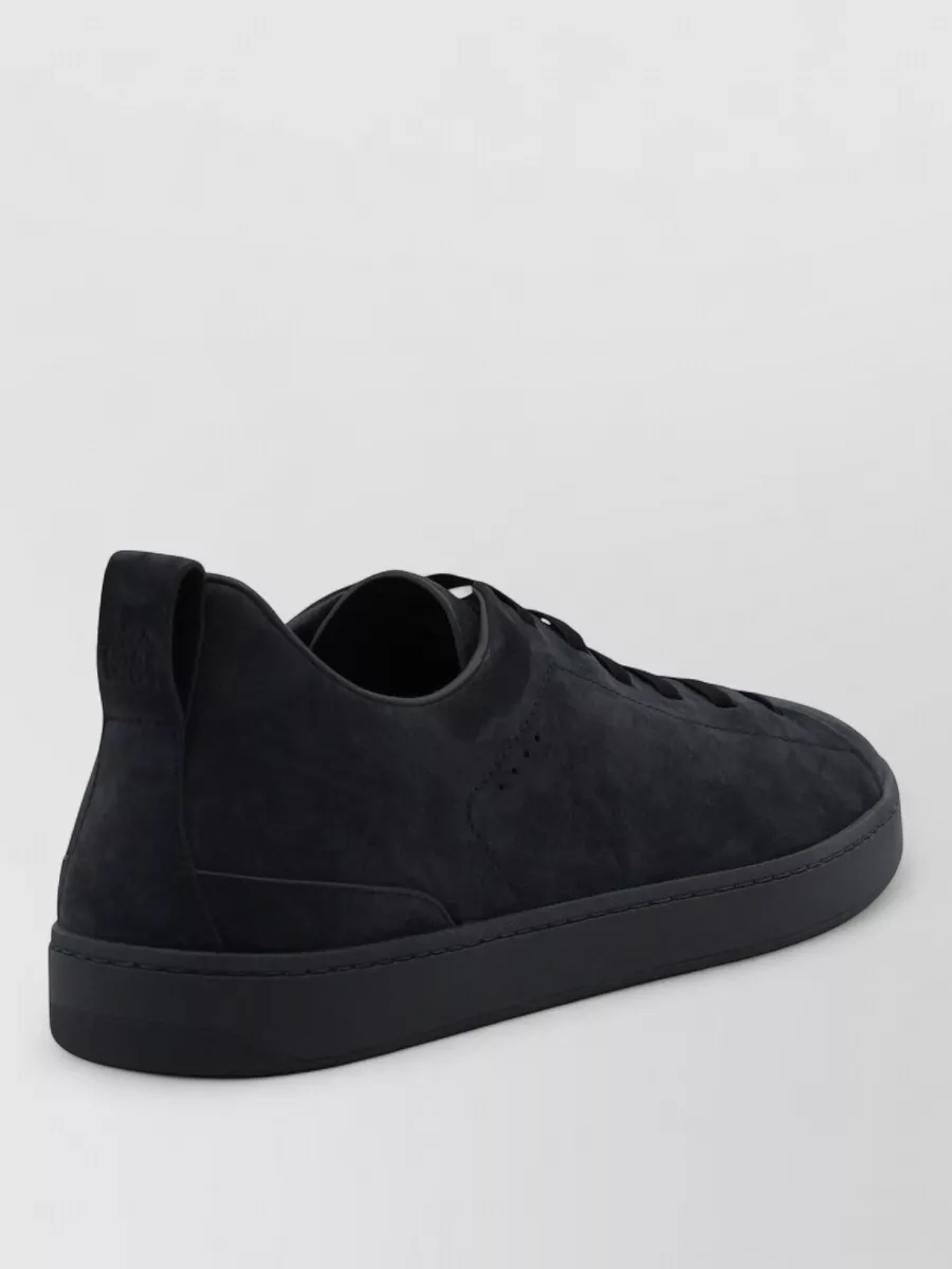 low profile suede sneakers rubber sole pull tab