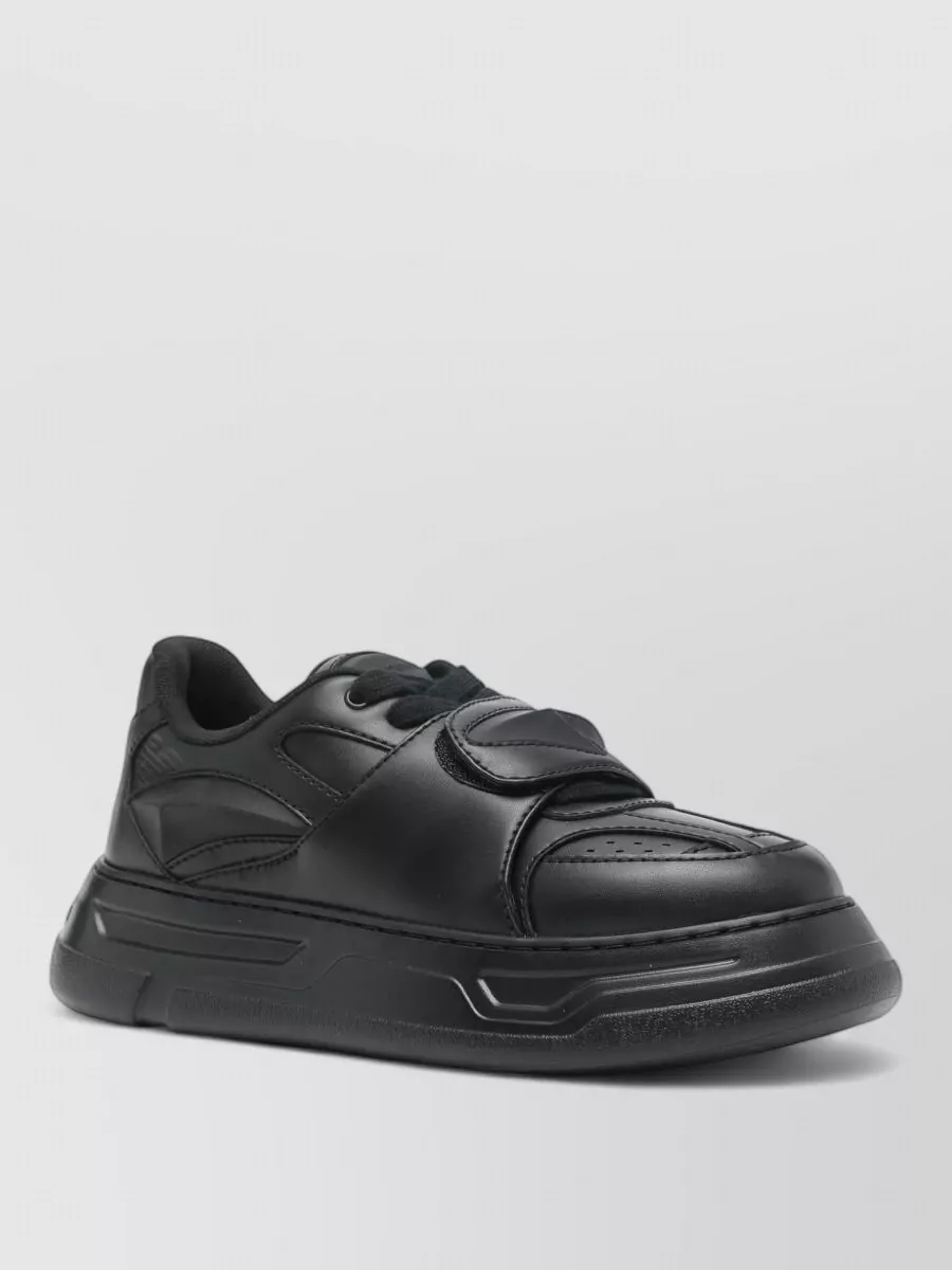 Emporio Armani leather sneakers contrast sole round toe