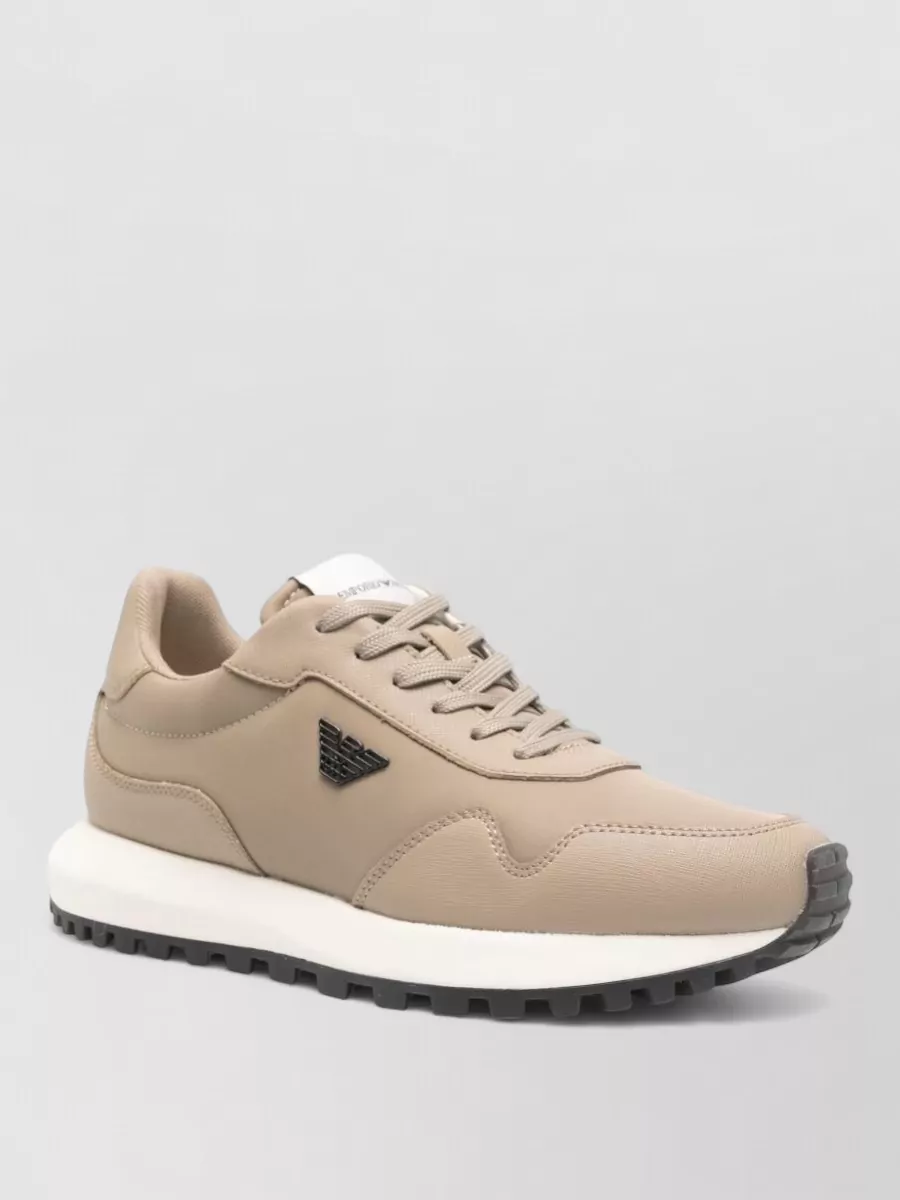 Emporio Armani nylon sneakers logo detail round toe rubber sole