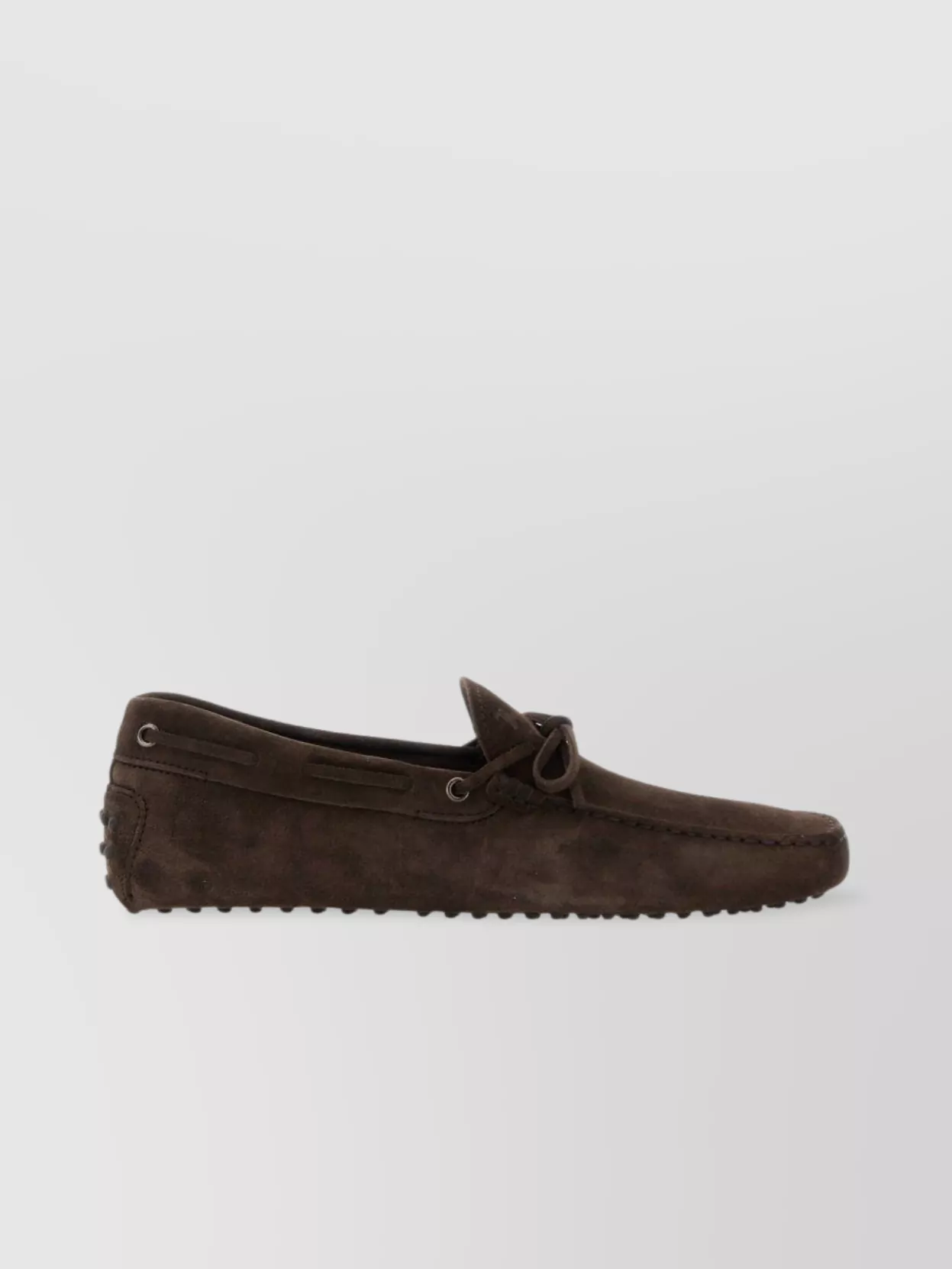Suede loafers with bow and eyelet detail