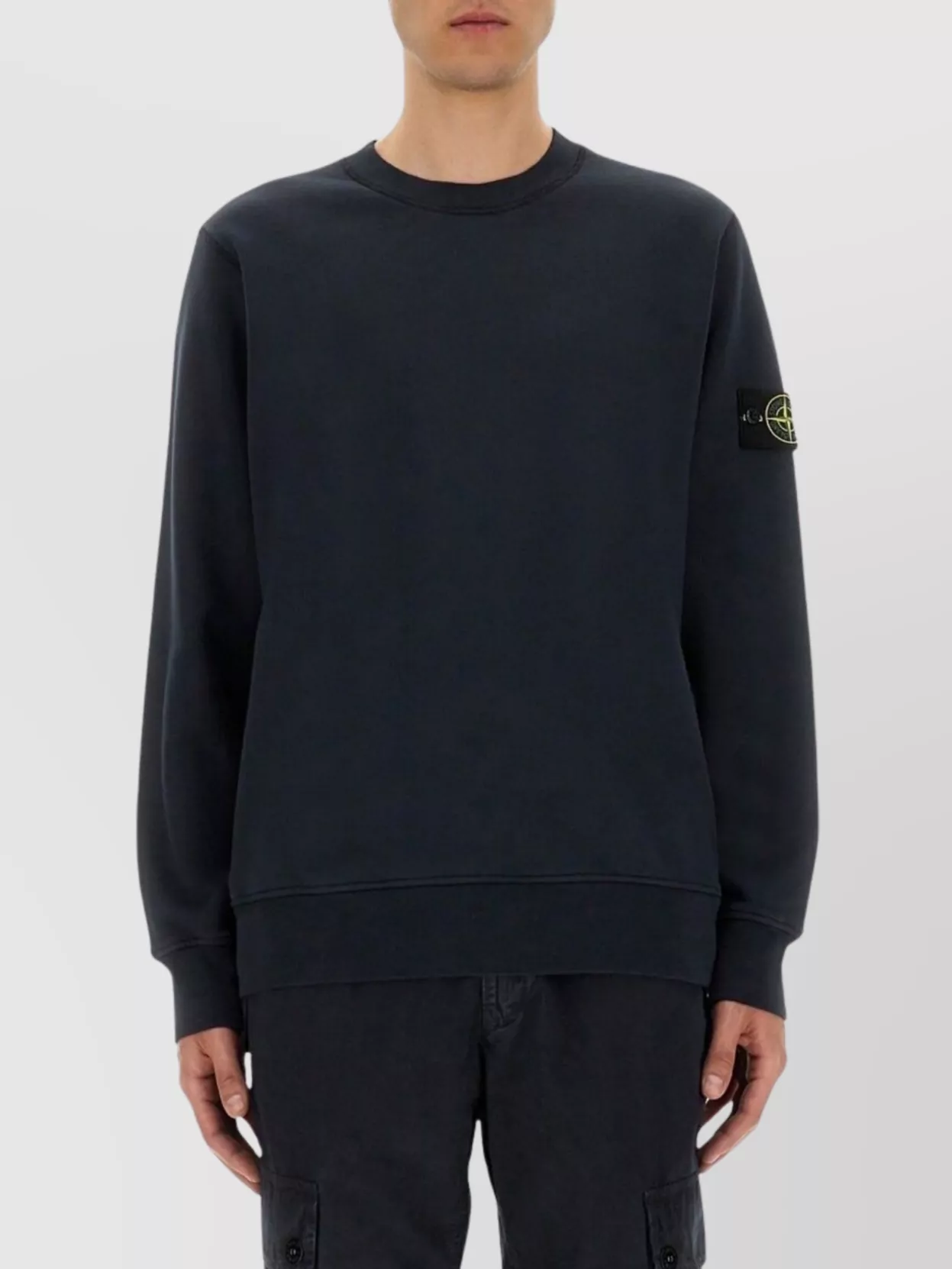 Stone Island midnight cotton sweater with ribbed cuffs and hem