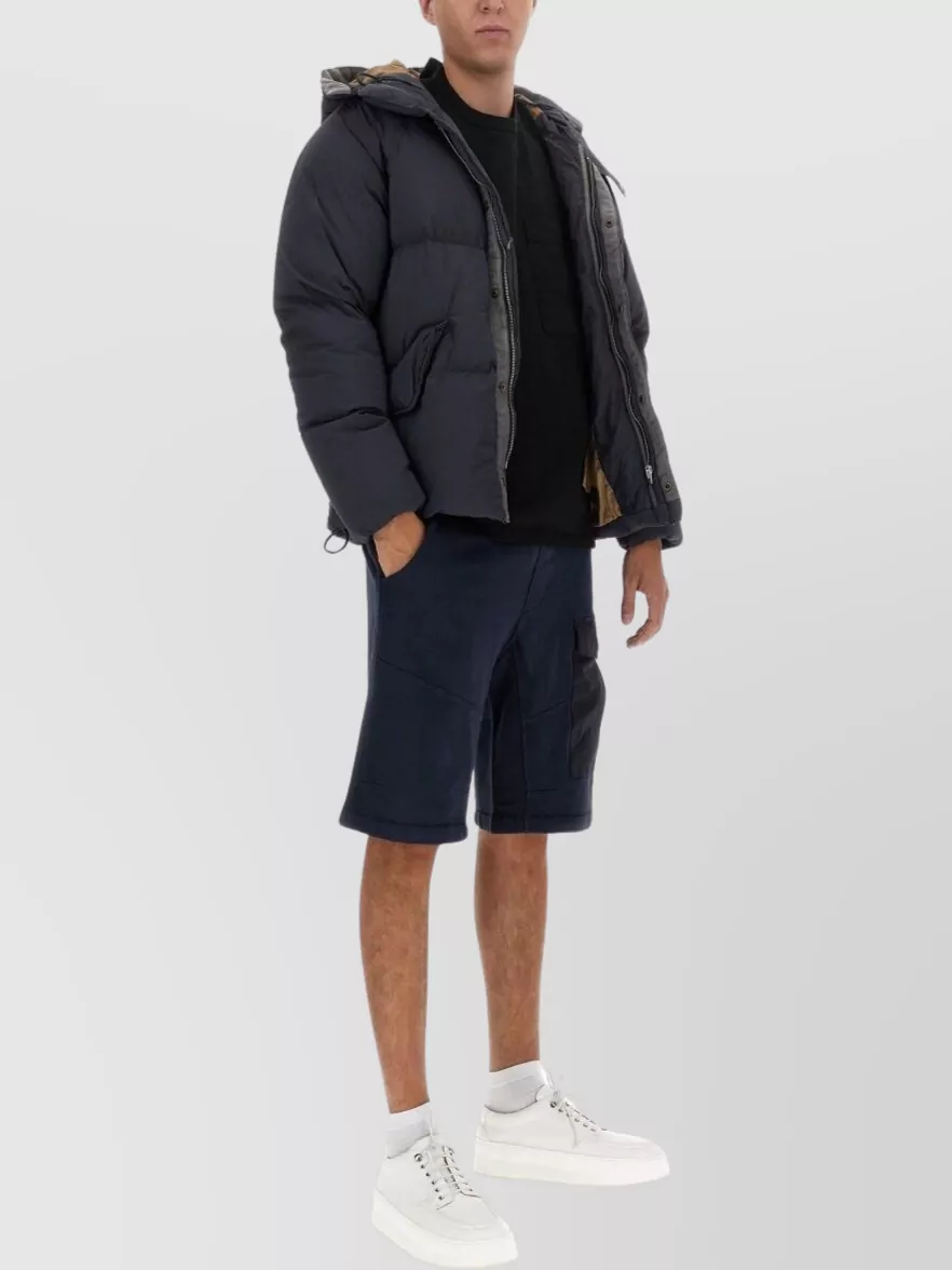 Ten C nylon puffer with hood and flap pockets
