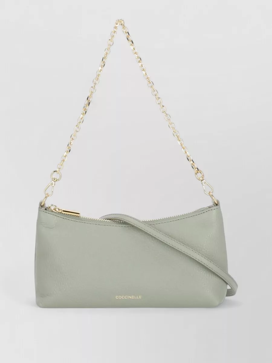 Coccinelle Pebbled leather shoulder bag gold tone chain